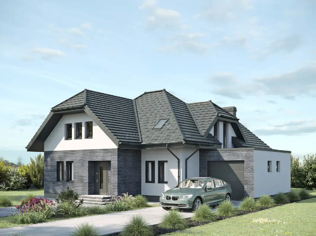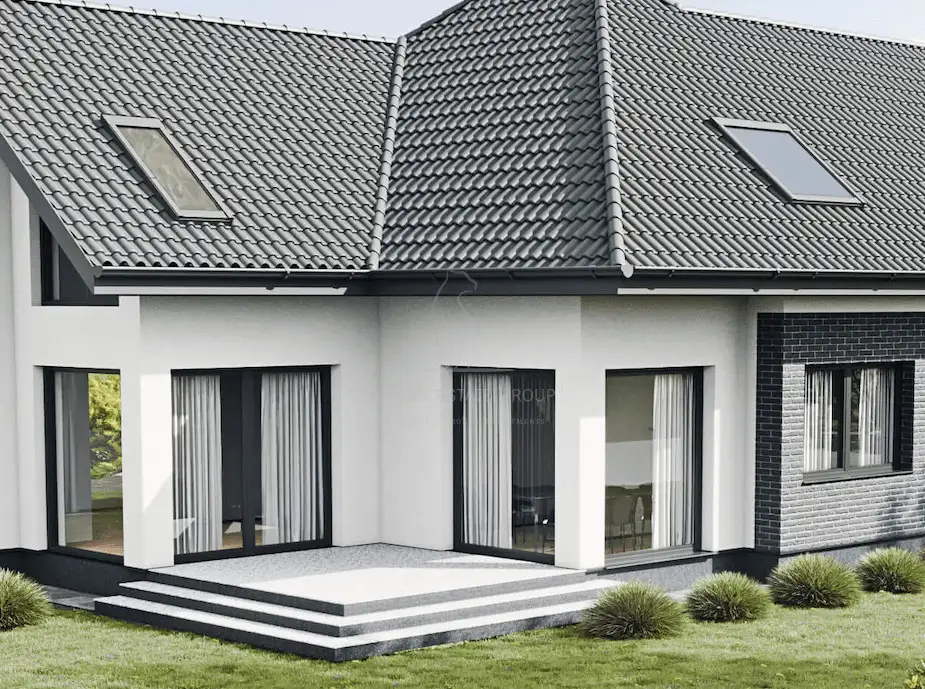 Dom z elektrycznymi roletami i fotowoltaiką. Wykorzystanie pompy ciepła (centralne ogrzewanie i woda), ogrzewanie podłogowe w całym domu.