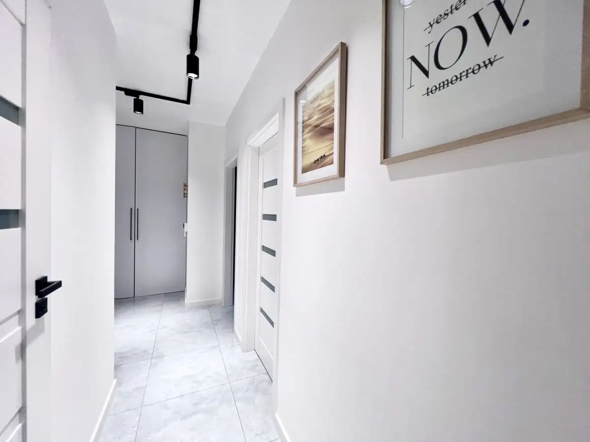 Mieszkanie jest w idealnym stanie, gotowe do wprowadzenia bez żadnych nakładów finansowych. W cenie pozostaje całe widoczne na zdjęciach, wysokiej jakości wyposażenie. Nowoczesna kuchnia w zabudowie na wymiar posiada kompletny sprzęt AGD (płyta indukcyjna, piekarnik, zmywarka). W salonie znajduje się komfortowa sofa z funkcją spania, stół, krzesła i meble. Aż trzy pojemne szafy na wymiar (dwie w korytarzu, jedna w sypialni) zapewniają mnóstwo miejsca do przechowywania. Łazienka również jest w pełni umeblowana i wyposażona w pralkę. TV w cenie !