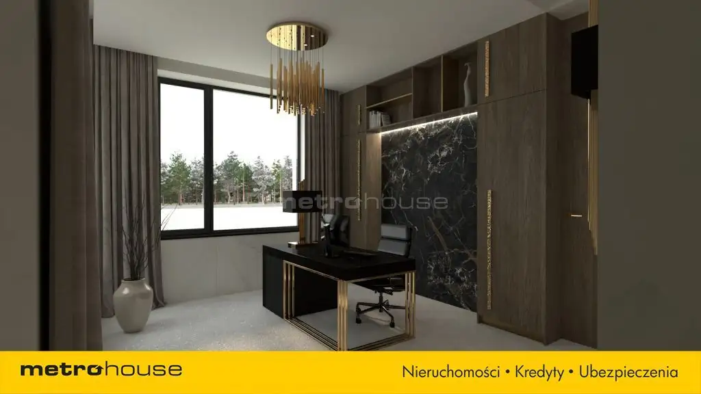 Przemyślany układ funkcjonalny obejmujący m.in. przestrzenie biurowe do pracy zdalnej, strefę rodzinną, część gościnną oraz niezależne sypialnie z łazienkami.