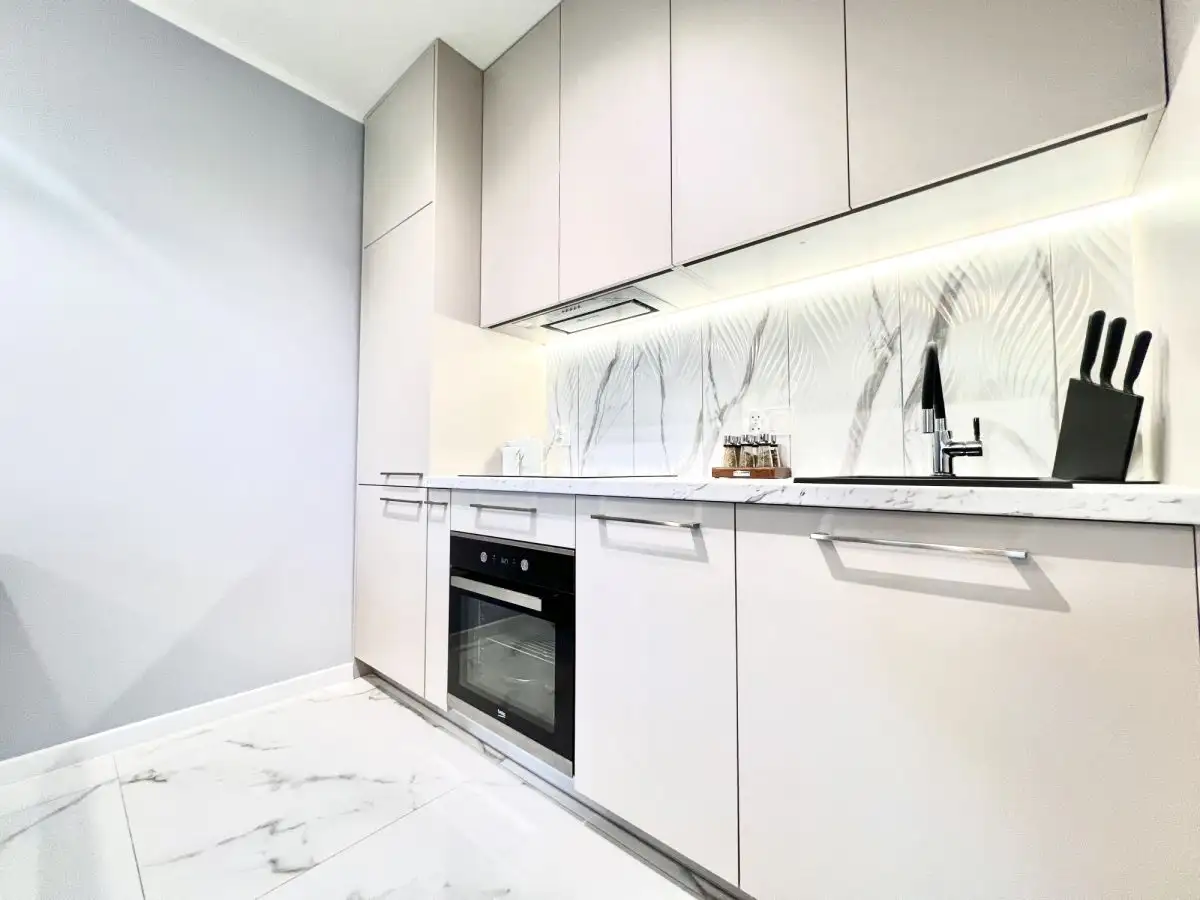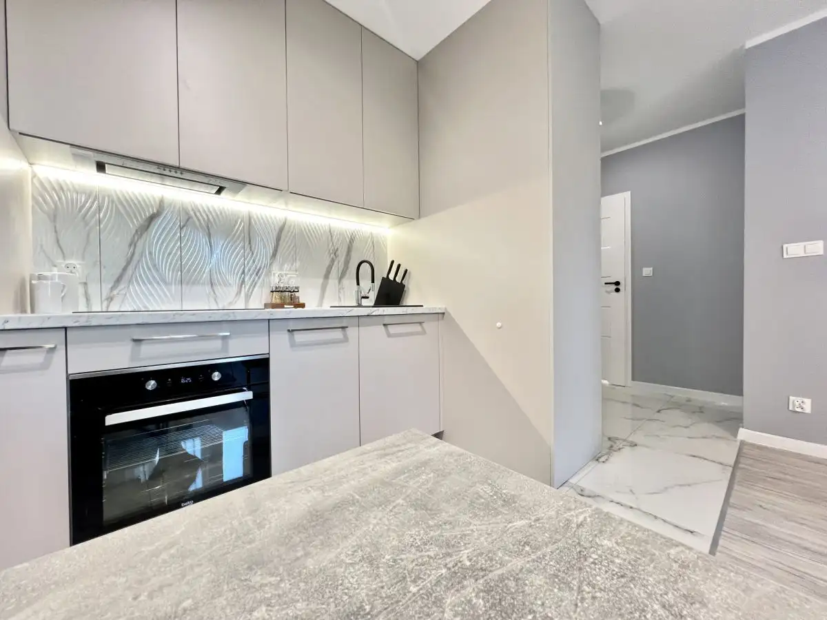 Salonu z aneksem kuchennym - serce mieszkania, idealne do wypoczynku i codziennego życia. Duże okna sprawiają, że wnętrze jest jasne i przestronne.