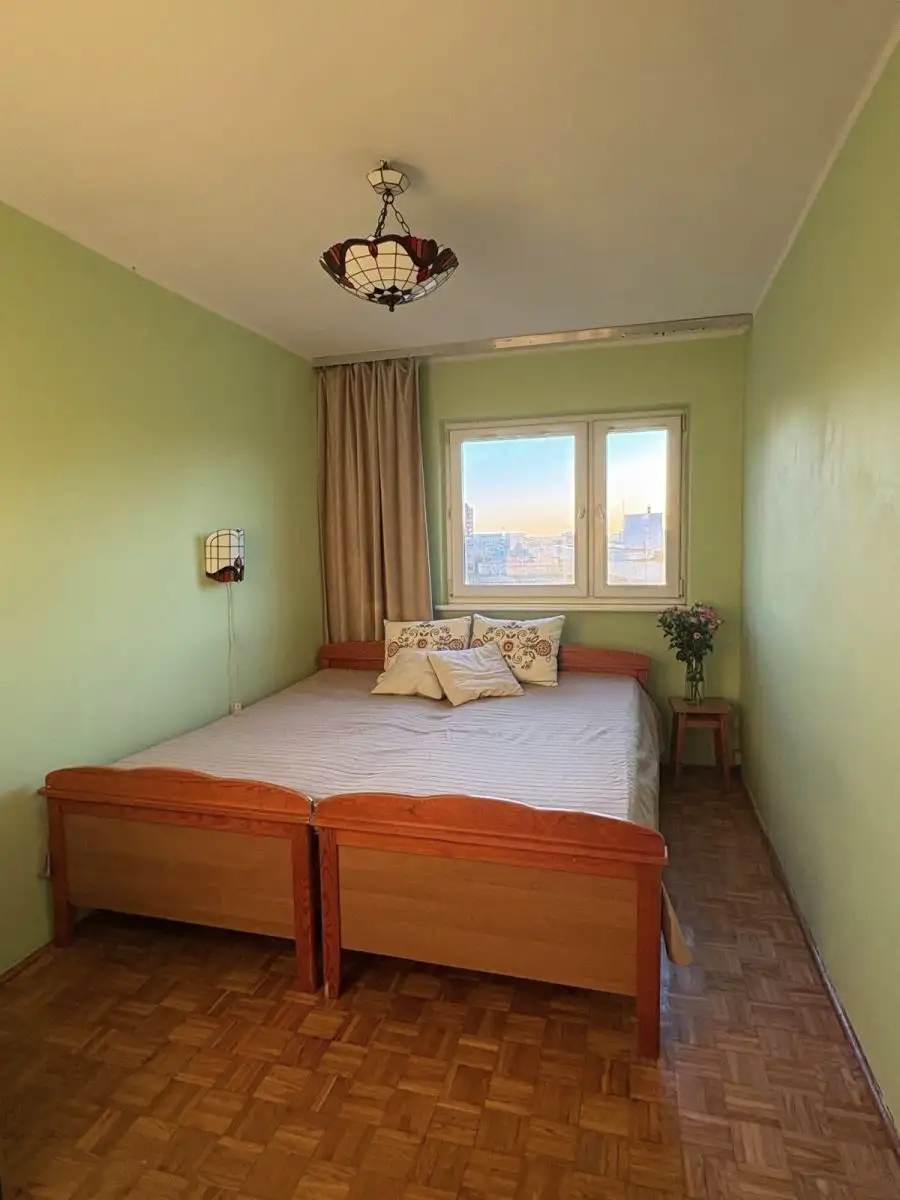 Lokal widny, rozkładowy - do wszystkich pomieszczeń bezpośredni dostęp z obszernego przedpokoju z miejscem na dwie szafy wnękowe. Pokoje 19, 10 i 9 mkw., kuchnia 6 mkw. z oknem - możliwość łatwego otwarcia i połączenia z przylegającym salonem . Z pokoju dziennego wyjście na niewielki balkon po stronie zachodniej, z widokiem na biznesowe centrum. Na podłogach w pokojach mozaika parkietowa, w kuchni i łazience terakota. Mieszkanie wymaga remontu lub odświeżenia. Do lokalu przynależy piwnica.