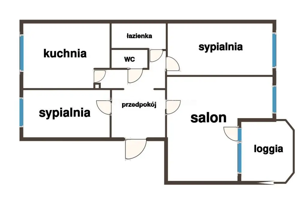 Mieszkanie o powierzchni 69,3m² składa się z 3 sypialni, przedpokoju, zamkniętej kuchni z oknem, łazienki oraz osobnego WC.