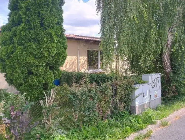 Dach budynku jednospadowy pokryty papą, ściany ceglane, zewnętrzna elewacja została pokryta tynkiem