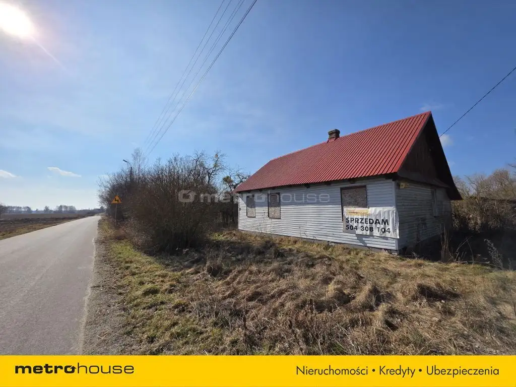 Przy drodze znajduje się stary drewniany domek do remontu, pokryty blachą, o powierzchni ok 75m² oraz drewniana szopa o powierzchni ok 20m².