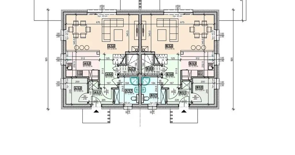 Budynek z dachem dwuspadowym krytym dachówką ceramiczną , orynnowanie, ocieplenie zewnętrzne ścian + tynki wewnętrzne i zewnętrzne, stolarka okienna PCV i drzwiowa zewnętrzna, wykonane instalacje wewnętrzne - ogrzewanie podłogowe .