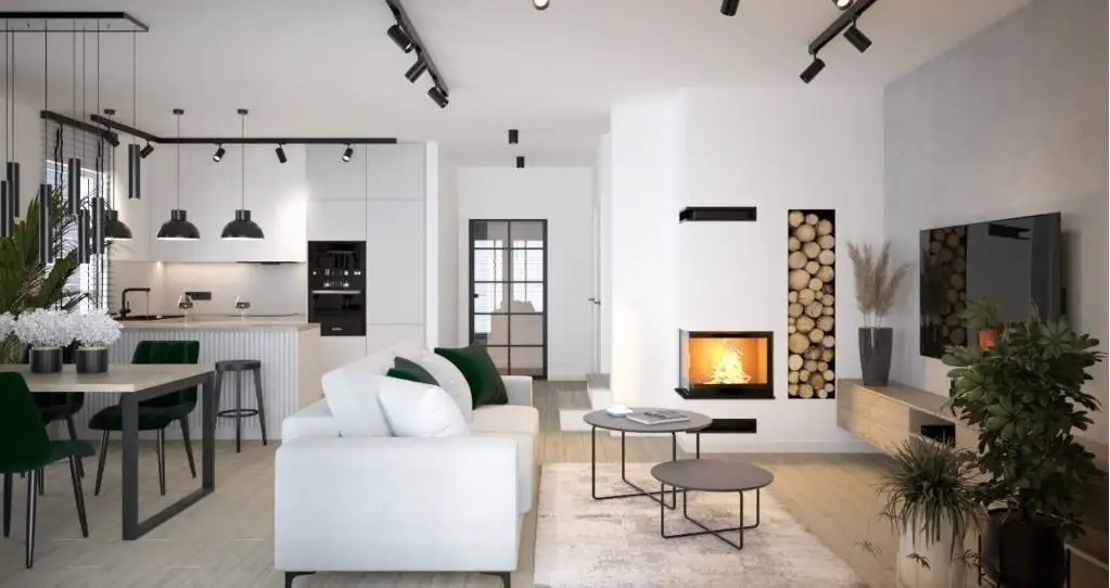 PARTER - salon z kominkiem i aneksem kuchennym (alternatywnie kuchnia wydzielona), łazienka, pomieszczenie gospodarcze , komunikacja,