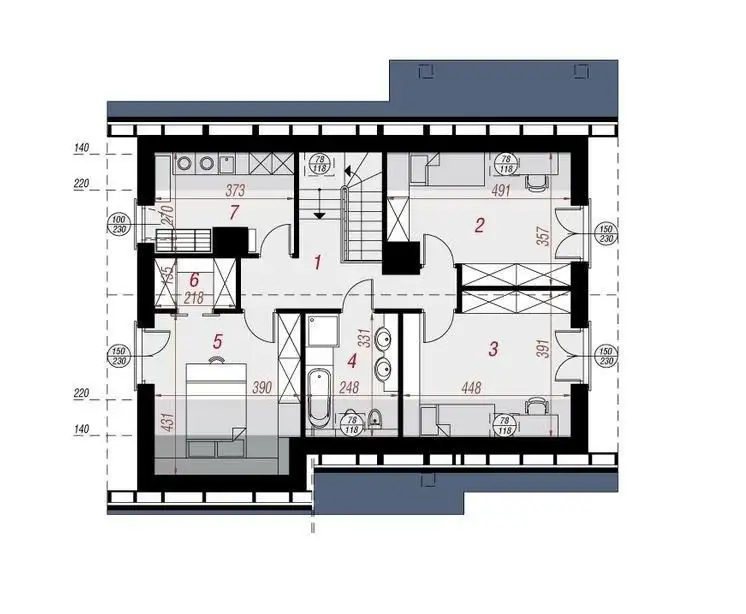 Funkcja z podziałem na strefę dzienną /parter/ i nocną /poddasze/ :
