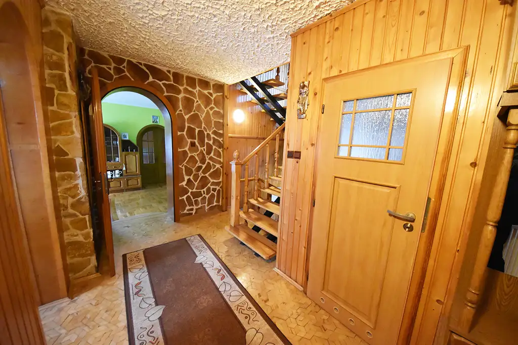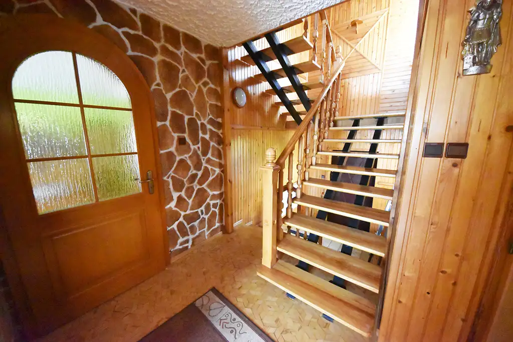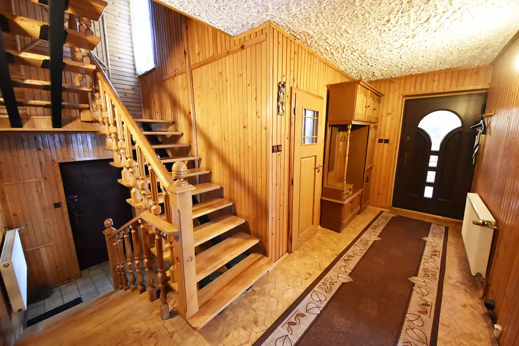 Standard wykończenia: dobry do zamieszkania lub własnej aranżacji, zmiany stylu, podłogi mozaika parkietowa, parkiet, ściany i sufity tynki, boazeria, kuchnia umeblowana wraz sprzętem AGD, łazienki wykafelkowane, wyposażone w wannę , kabinę prysznicowe, umywalki, lustra, meble łazienkowe. Stolarka drzwiowa drewniana, okienna PCV (okna dwuszybowe) z roletami. Dom wybudowany w technologii tradycyjnej, ściany zewnętrzne z cegły pełnej ocieplone styropianem, dachówka ceramiczna. Instalacja elektryczna, wodno - kanalizacyjna, centralnego ogrzewania. Całość posesji ogrodzona, dojścia i podjazd - kostka brukowa, własna studnia, zagospodarowana, nasadzenia kwiaty, krzewy,drzewa.