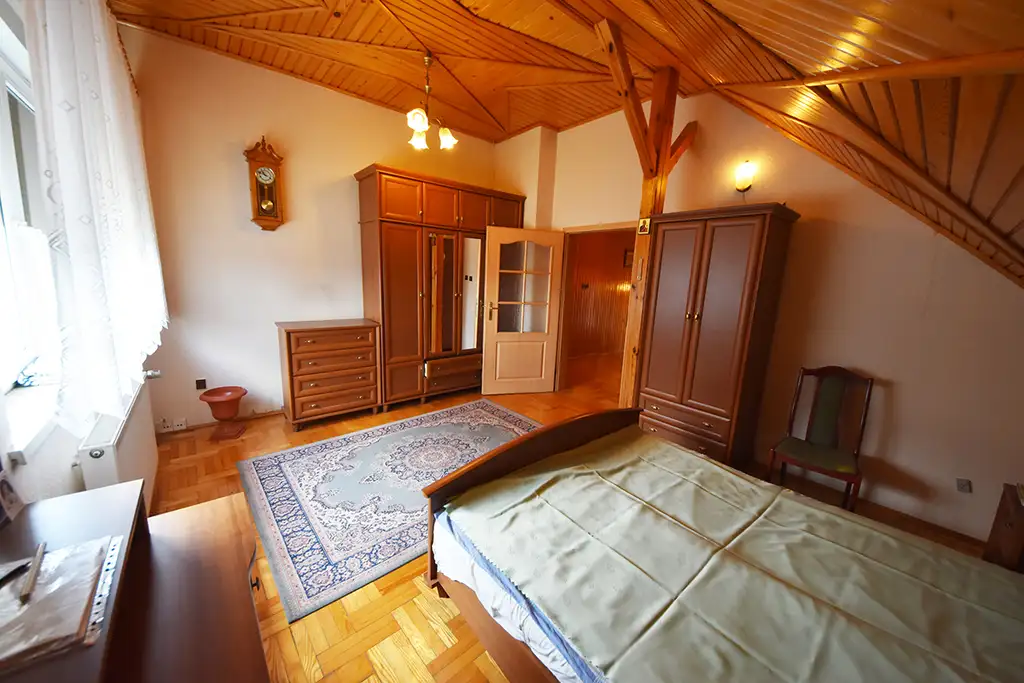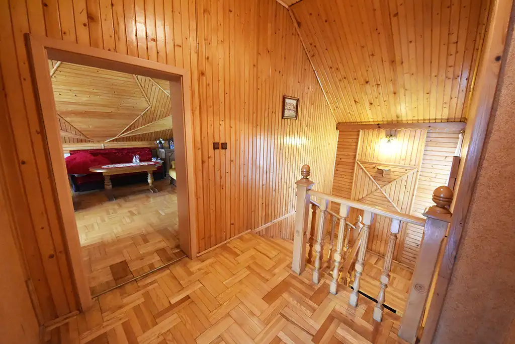 Powierzchnia parteru obejmuje dużą jasną kuchnię, salon z wyjściem na taras, p. pokój, WC oraz schody z holem. Piętro: sypialnię z wyjściem na balkon, oraz ogromny duży pokój przestronną łazienkę, p.pokój. Istnieje możliwość podzielenia dużego pokoju na mniejsze. Pomieszczenia na poziomie piwnic, funkcjonalne, można zagospodarować na potrzeby domowników.