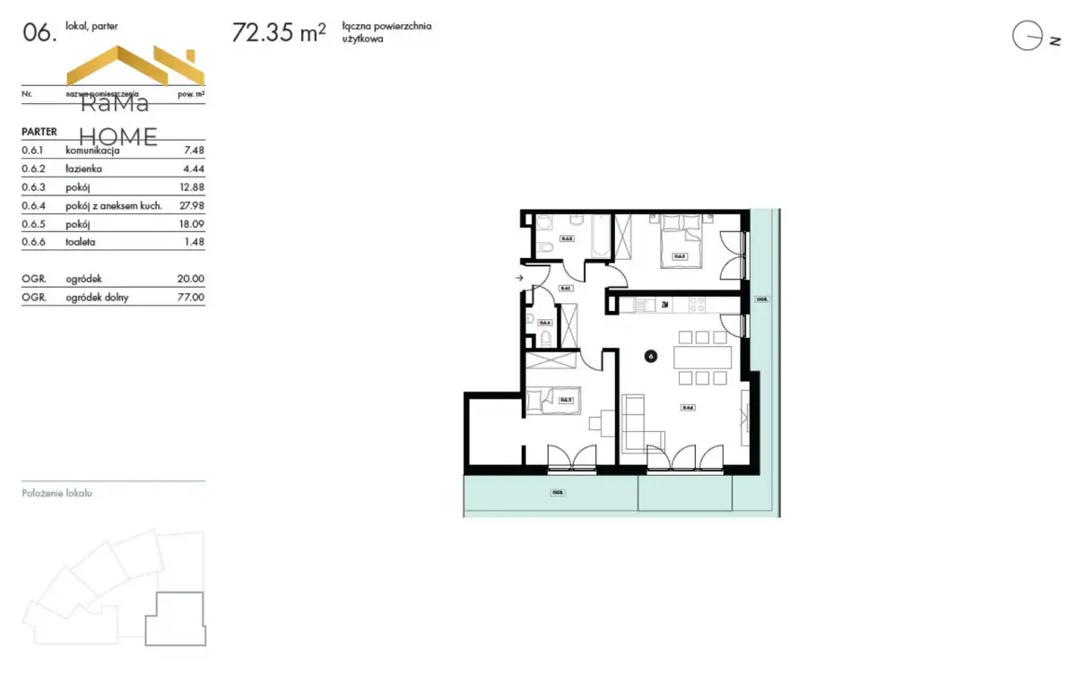 Mieszkanie o powierzchni 72,35m² składa się z: