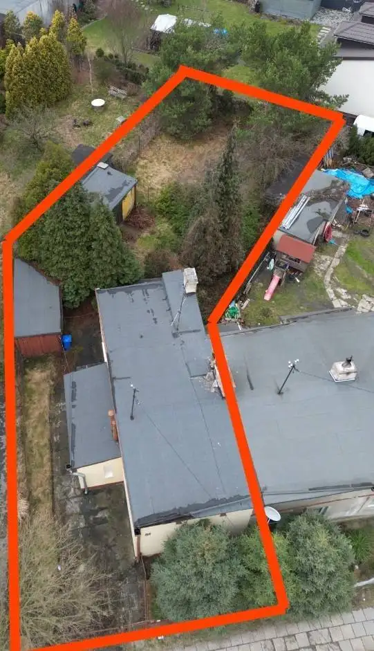 Działka o powierzchni 507m², zabudowana z budynkiem parterowym z poddaszem nieużytkowym, 3 izbowym z lat 40 tych o powierzchni 74m²