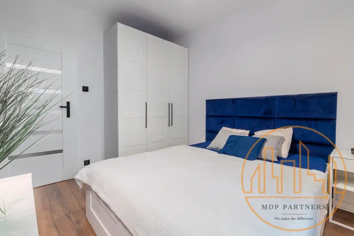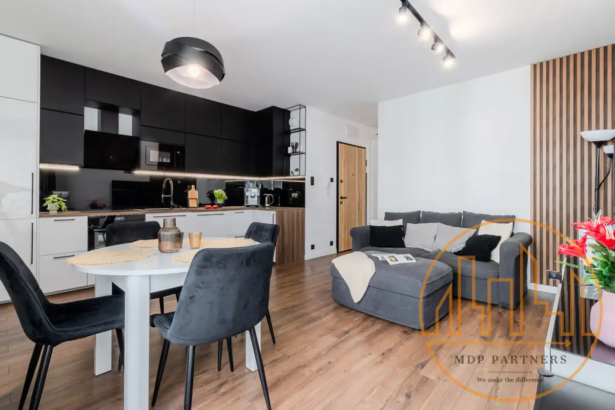 Nieruchomość w pełni wyposażona i gotowa do wprowadzenia !Całkowita powierzchnia mieszkania wynosząca 63,15 m² została podzielona na : - Salon z aneksem kuchennym - 22,57 m²