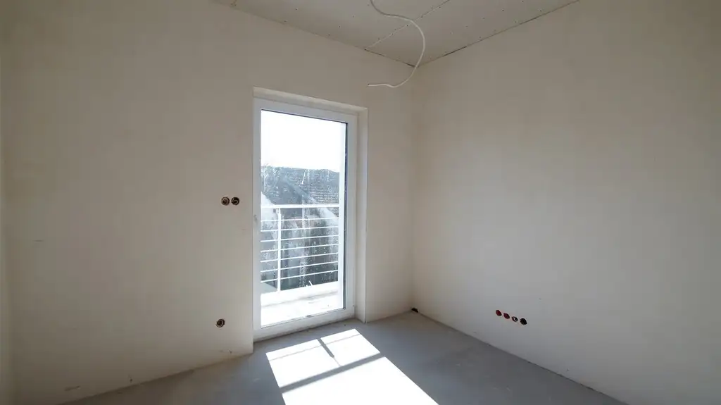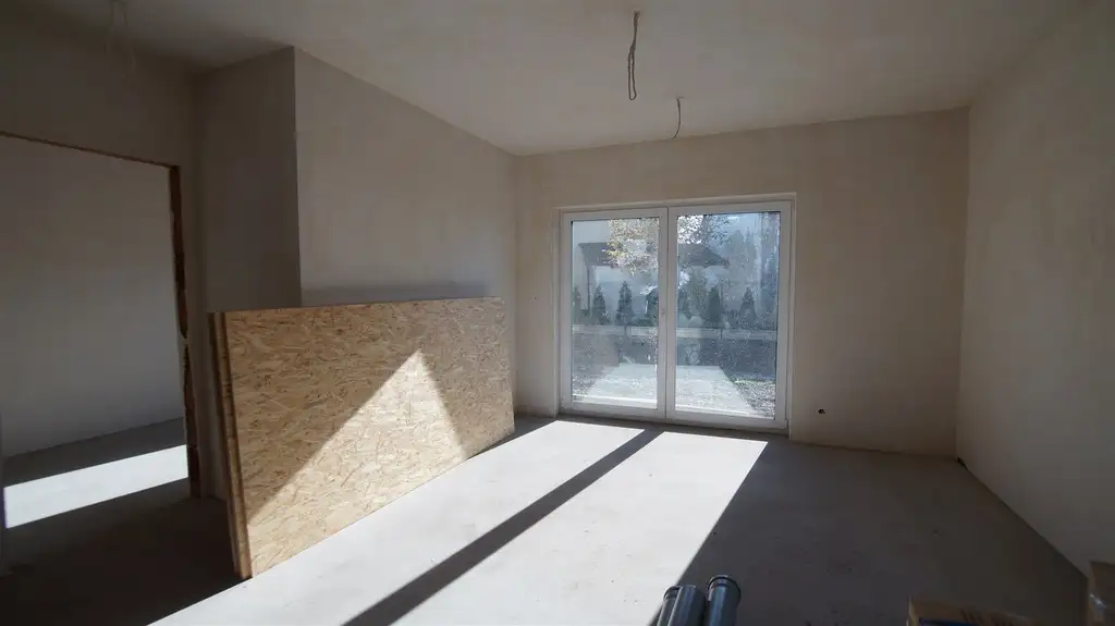 Mieszkanie w standardzie deweloperskim, do wykończenia. Okna trzy szybowe o profilach PCV, elektryczne rolety zewnętrzne, ogrzewanie podłogowe, ściany - gładzie. Pompa ciepła. Nieruchomość ogrodzona, wyłożona kostką brukową, wyznaczone miejsce postojowe. Istnieje możliwość zagospodarowania powierzchni poddasza.