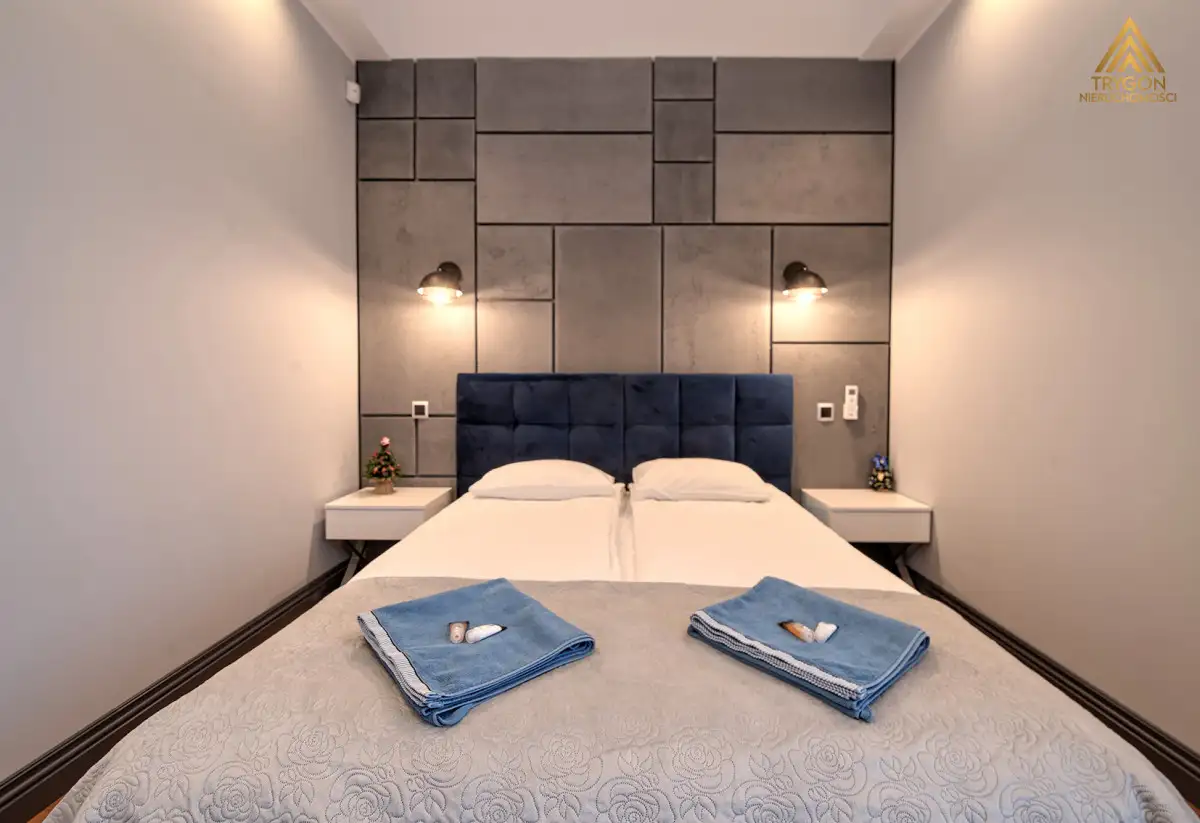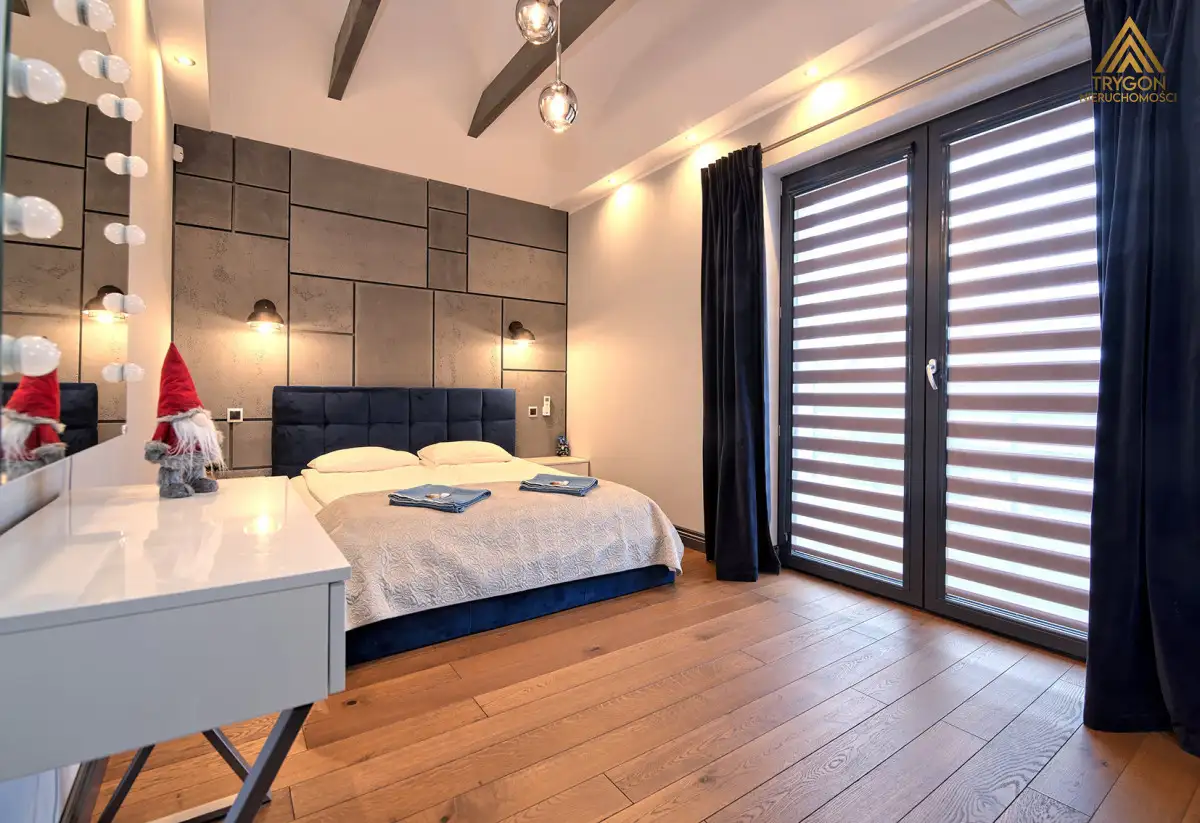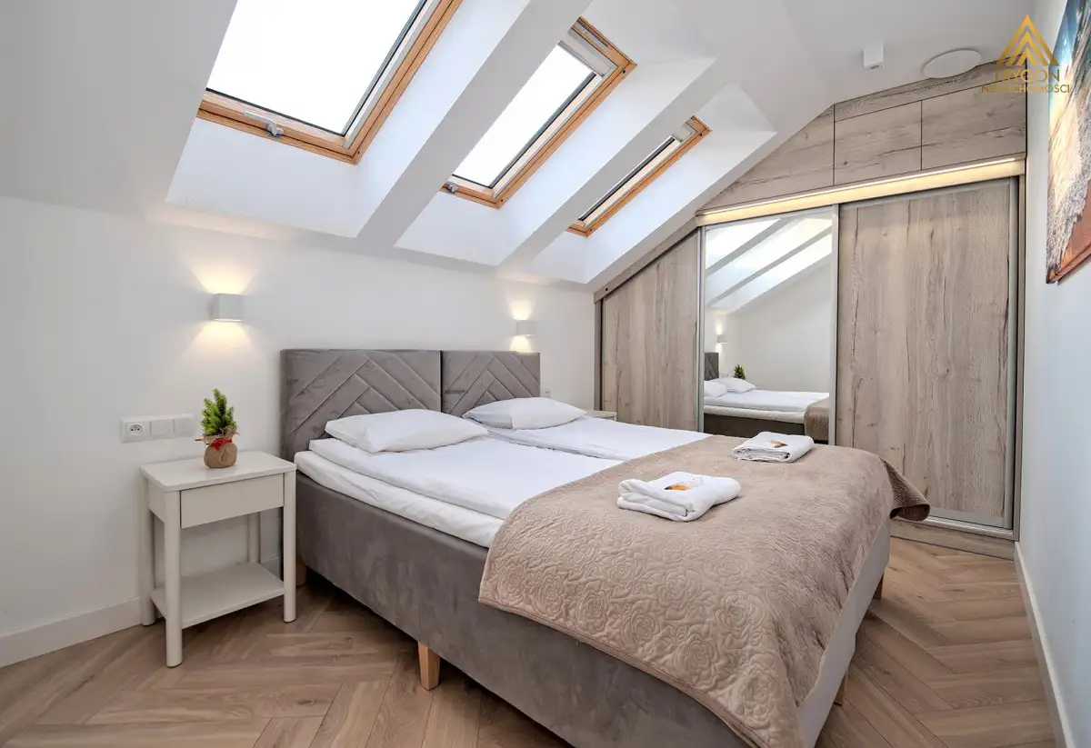 13,6 m² - sypialnia z garderobą 1 oraz dostęp do dużego tarasu około 15m²