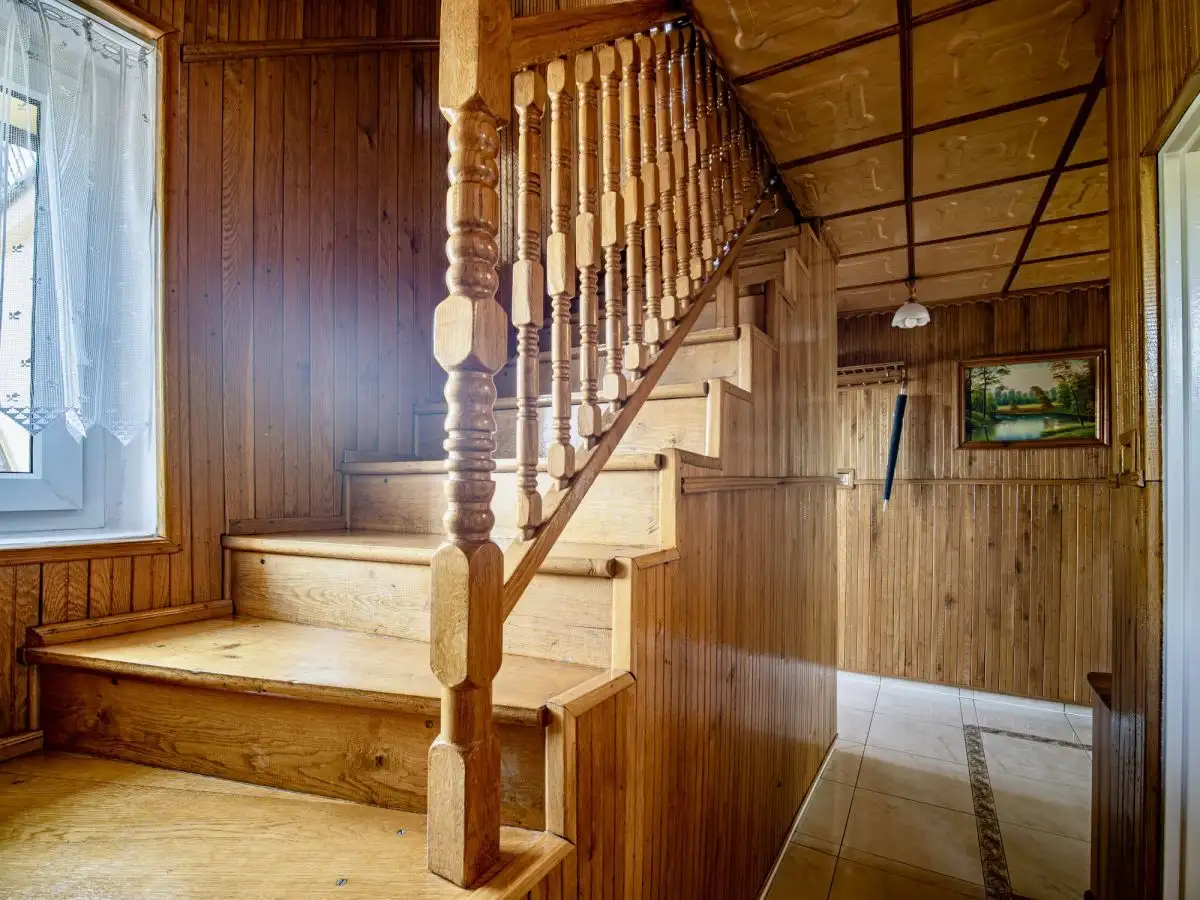 Dom został wybudowany w 1979 roku, a od momentu zakupu przez obecnych właścicieli przeszedł kompleksowy remont w 2020 roku. Budynek jest w pełni podpiwniczony, posiada dwa źródła ogrzewania (gazowe i na ekogroszek), a jego powierzchnia użytkowa to ok. 129 m². Wnętrze domu zostało funkcjonalnie zaprojektowane - znajduje się tu m.in. przestronny salon o powierzchni 34,97 m², kuchnia z jadalnią, trzy wygodne sypialnie, łazienka, spiżarka oraz komunikacja. Dodatkowo do dyspozycji mieszkańców pozostaje piwnica z kotłownią, pralnią, pomieszczeniami gospodarczymi i pokojem o powierzchni 10,5 m².