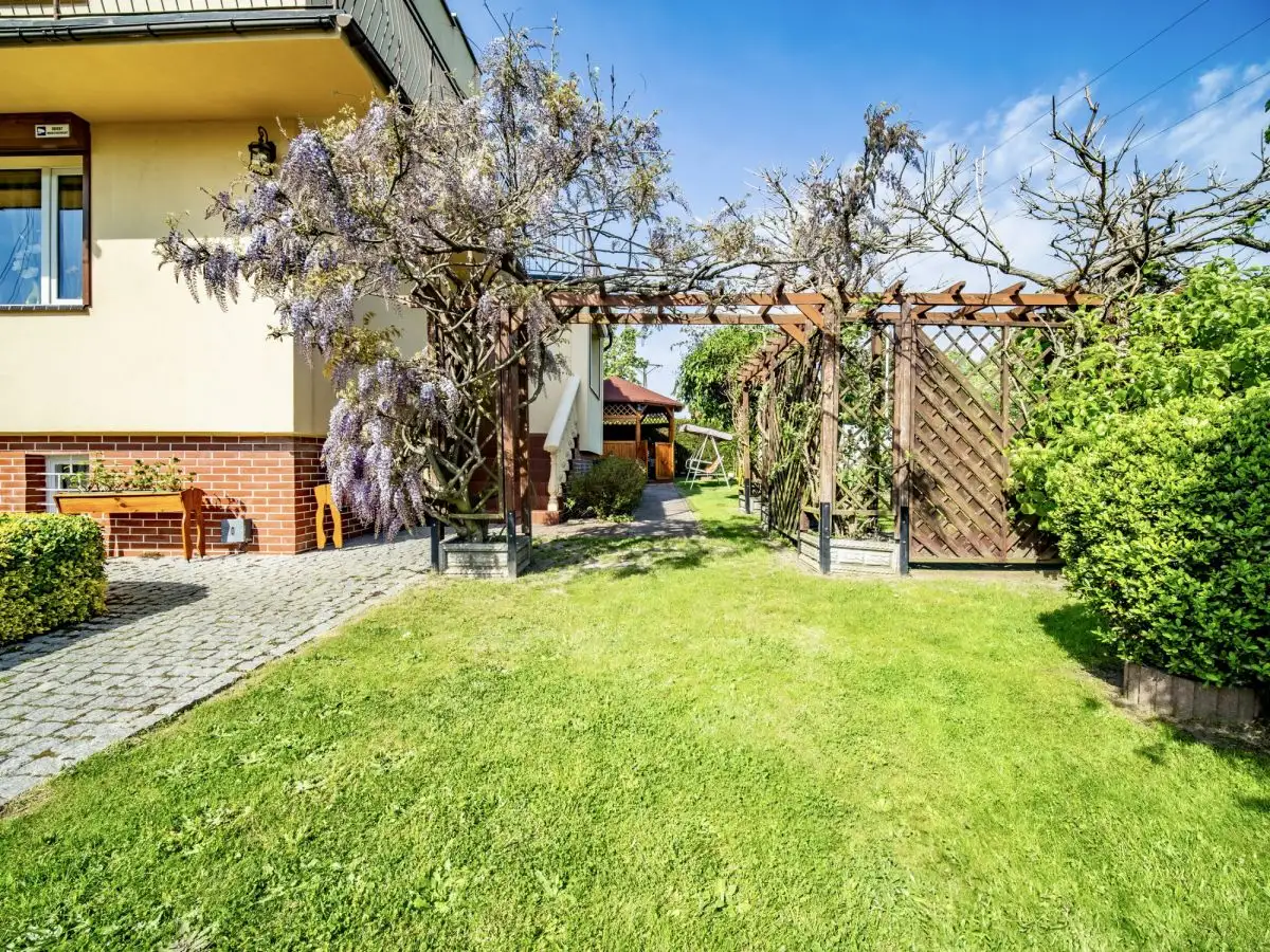 Działka o powierzchni 12 arów została starannie zagospodarowana. Została podzielona na strefę rekreacyjną oraz część przeznaczoną do uprawy roślin i warzyw. Znajduje się tu oczko wodne z rybami, altana z kompletem mebli ogrodowych z 2016 roku, dwa zbiorniki na wodę deszczową oraz budynek gospodarczy z doprowadzonym prądem. Do posesji prowadzą dwa niezależne wjazdy, a przy ulicy dostępne są dodatkowe miejsca parkingowe.