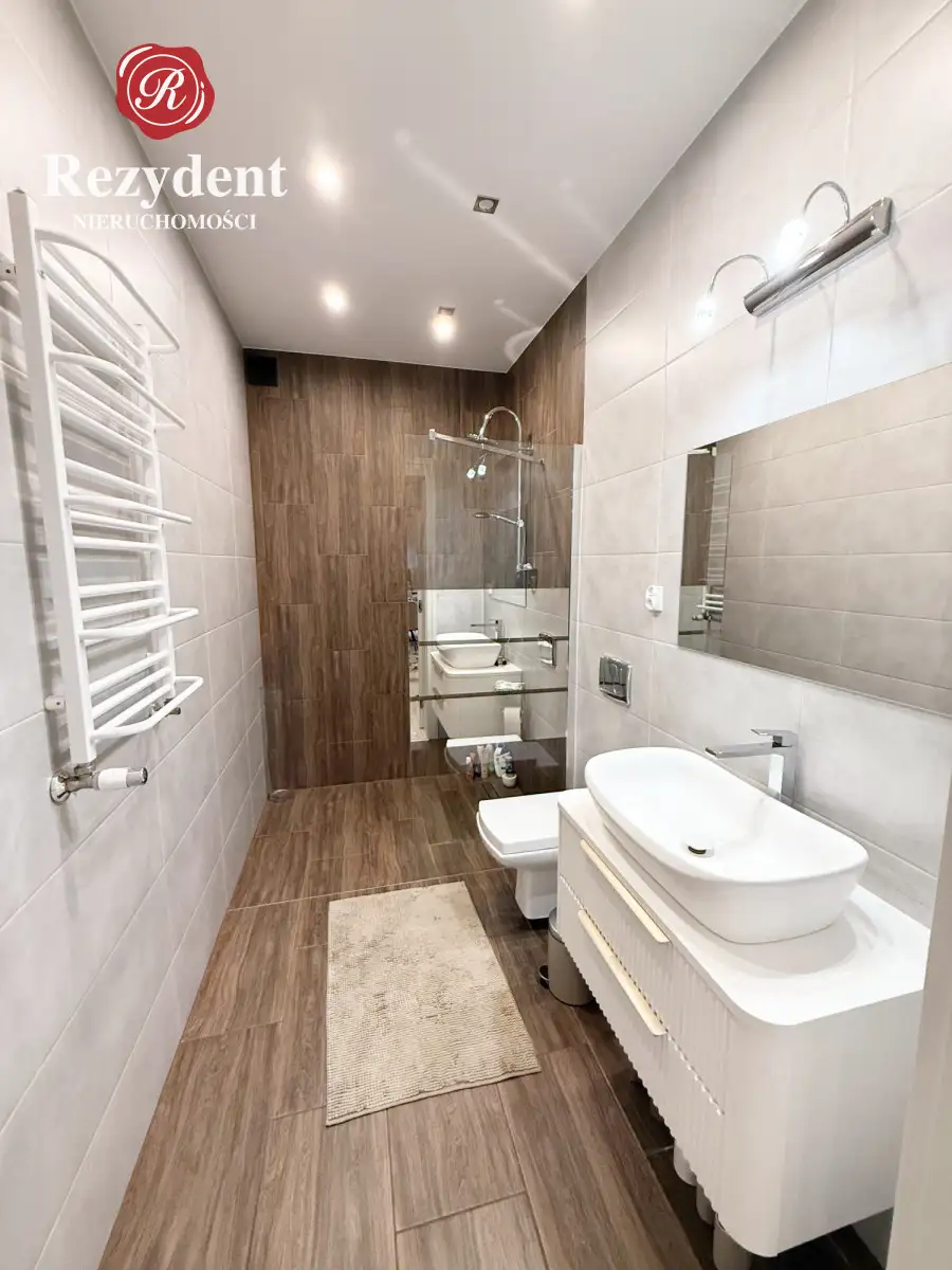 Całość urządzona nowocześnie i spójnie, przy użyciu materiałów wysokiej jakości.