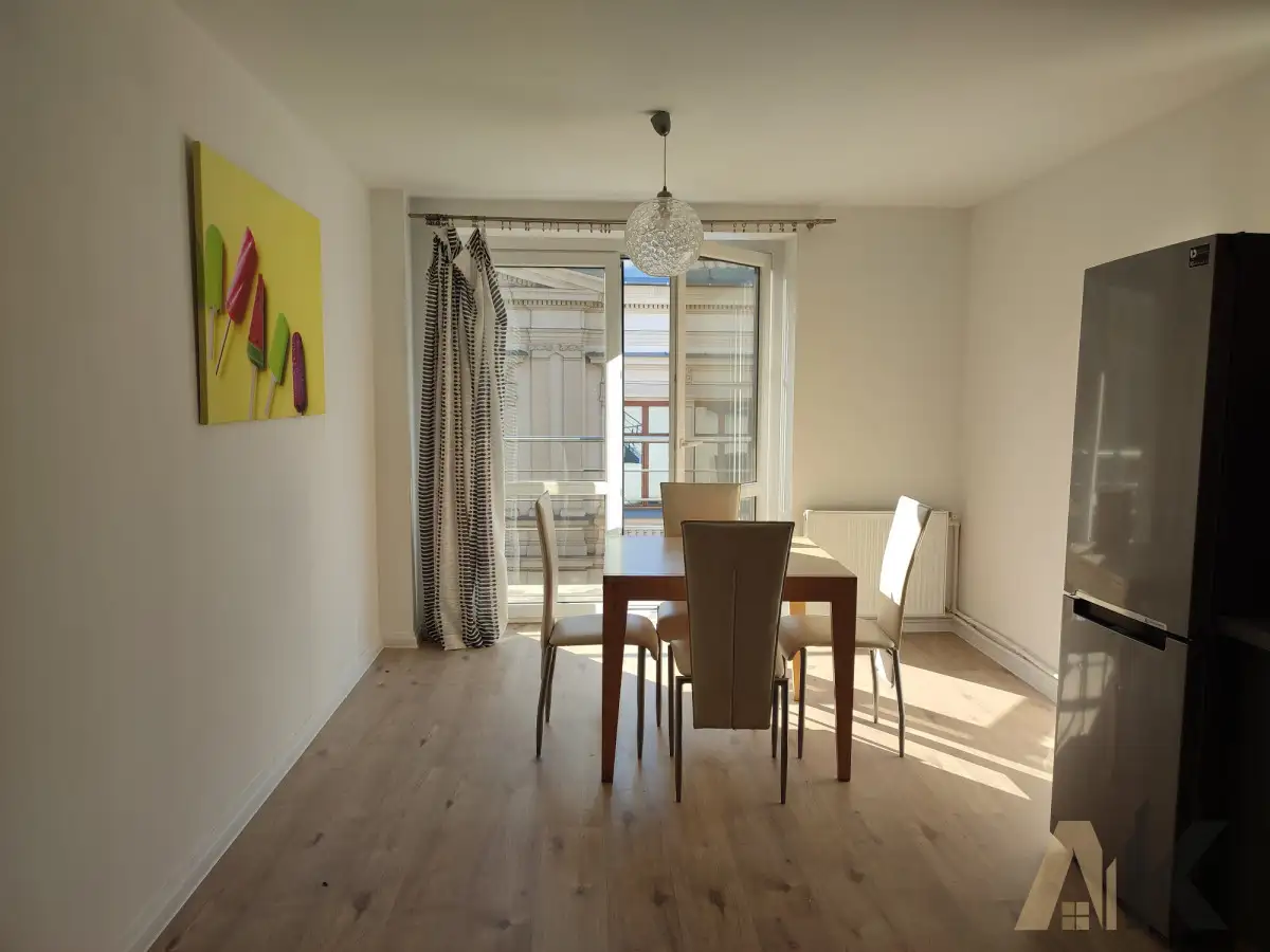 Wyposażenie: Mieszkanie jest w pełni umeblowane i wyposażone w sprzęt AGD (lodówka, zmywarka, pralka, kuchenka). W salonie znajduje się stół z krzesłami, rozkładana sofa.