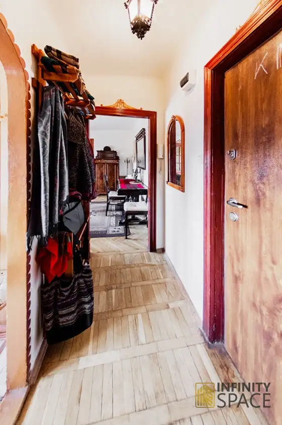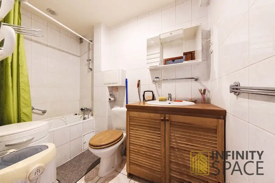 The apartment requires renovation. The floors are finished with oak parquet and ceramic tiles in the bathroom and kitchen. The walls are plastered and painted.