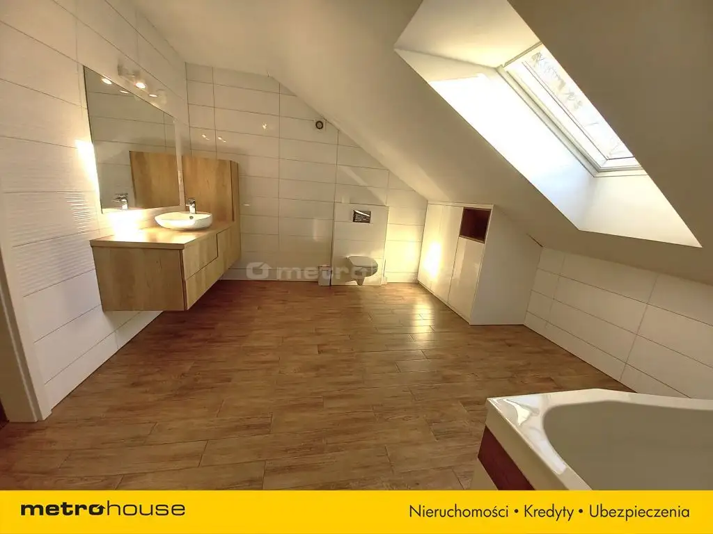 Poddasze oferuje trzy dodatkowe sypialnie, duży pokój rekreacyjny oraz przestronną łazienkę z wanną.