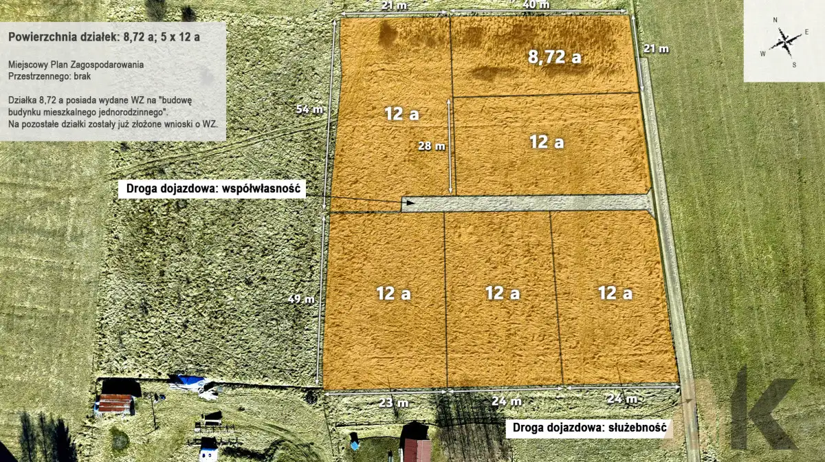 Na wszystkie działki zostały wydane WZ na "budowę budynku mieszkalnego jednorodzinnego".