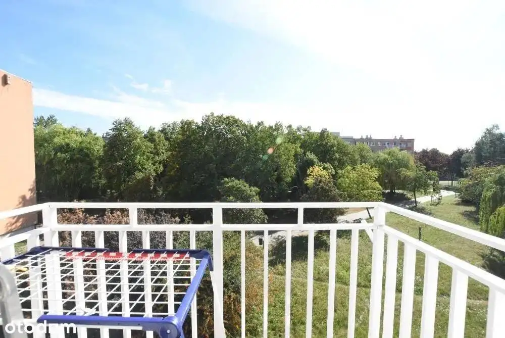 Mieszkanie jest jasne dzięki dużej powierzchni okien oraz wyposażone w mały balkon z ładnym widokiem na tereny zielone.