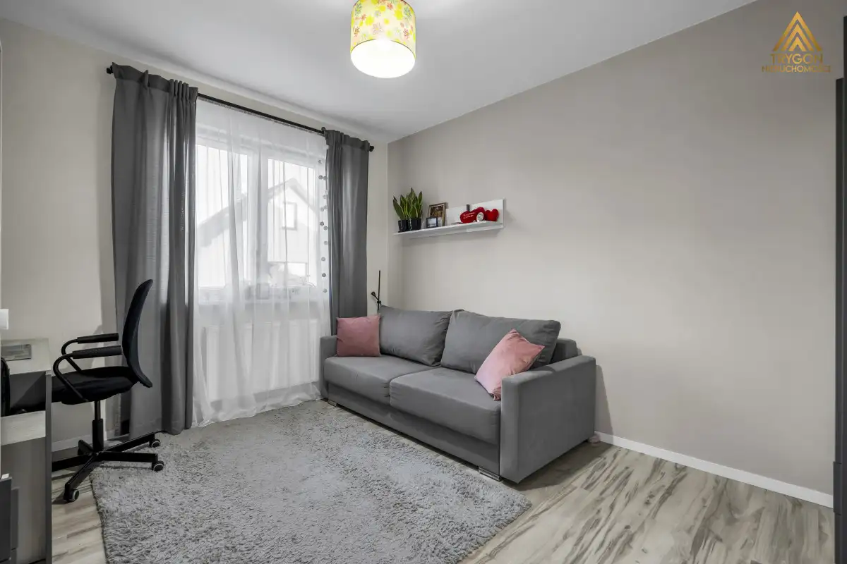 mieszkanie dwupiętrowe o powierzchni całkowitej 180 m² (140 m² powierzchni użytkowej) z prywatnym ogrodem (150 m²). Znajduje się na zamykanym osiedlu. Kameralna zabudowa, wspólna przestrzeń dla mieszkańców. Przyjazne sąsiedztwo.