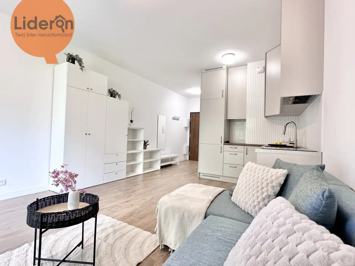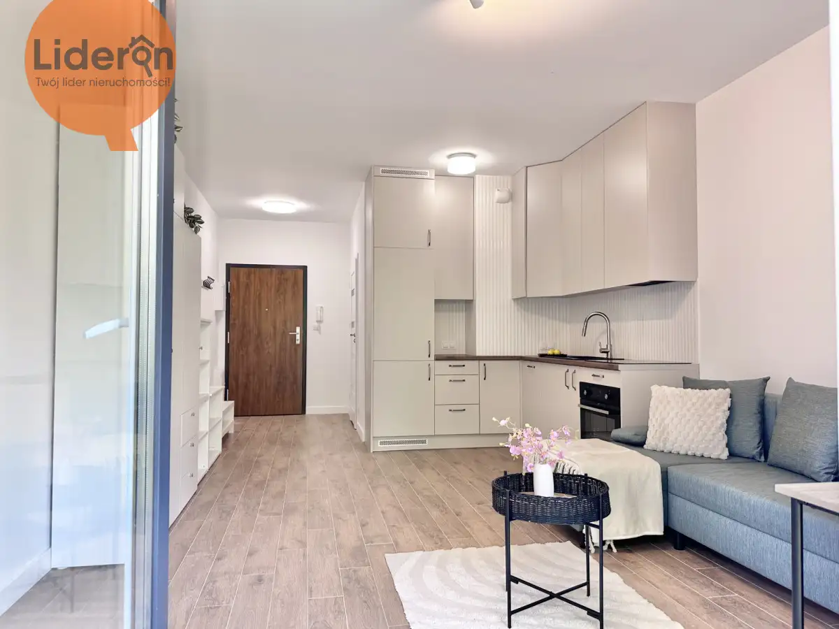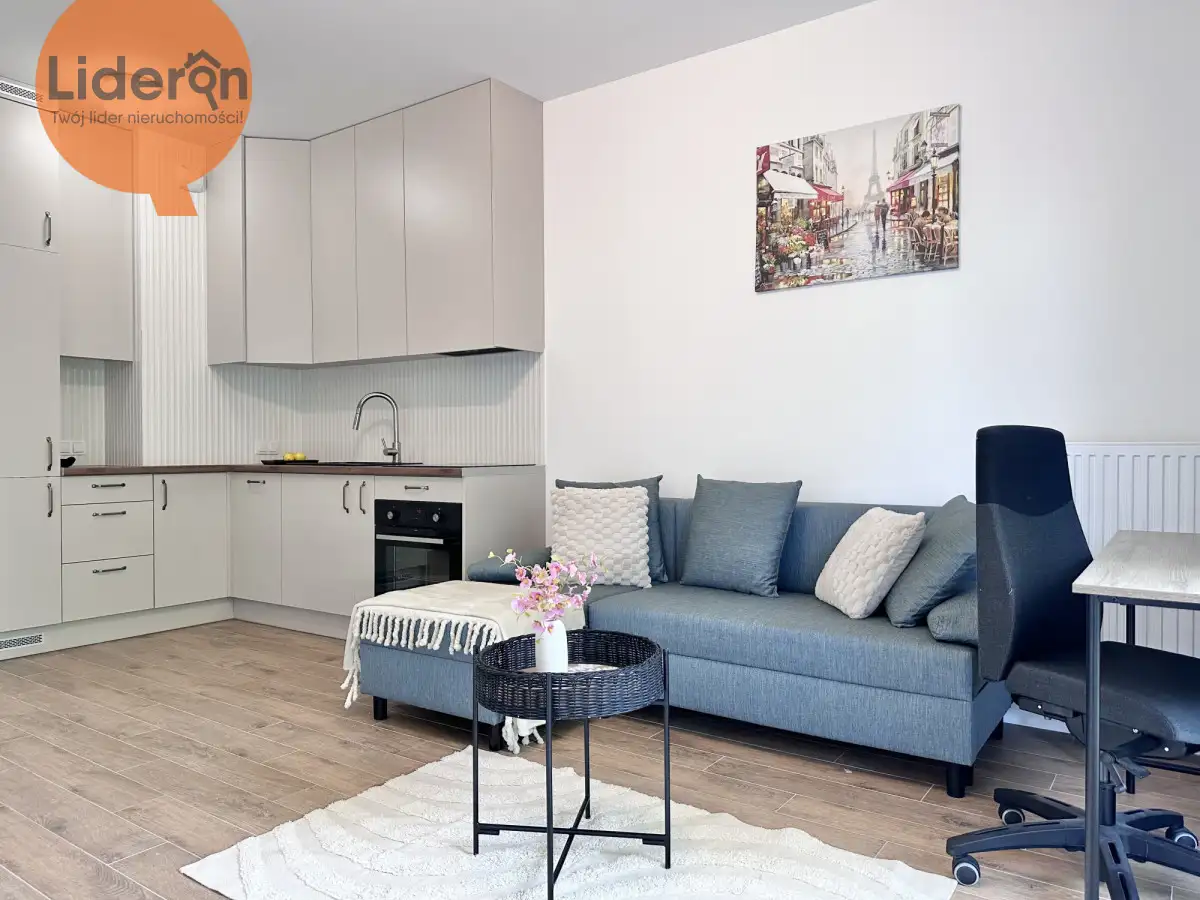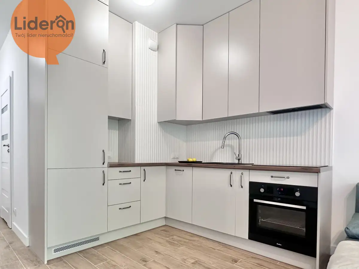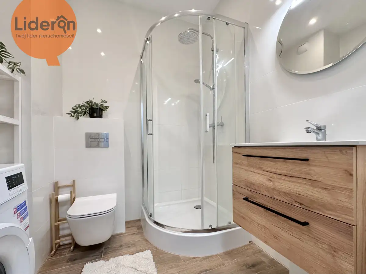 mieszkania lub odświeżenia według własnego gustu. Na podłodze położone są panele, aneks kuchenny jest w pełni wyposażony w podstawowe sprzęty AGD oraz pojemne szafki i schowki, natomiast łazienka wykończona jest gładzią i kafelkami, z kabiną prysznicową, toaletą, pralką oraz umywalką. Nowe okna PCV zapewniają dobrą izolację termiczną i akustyczną.