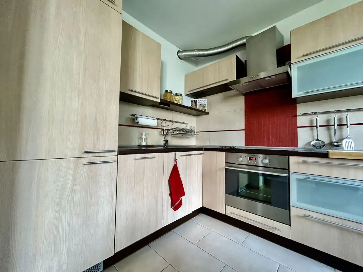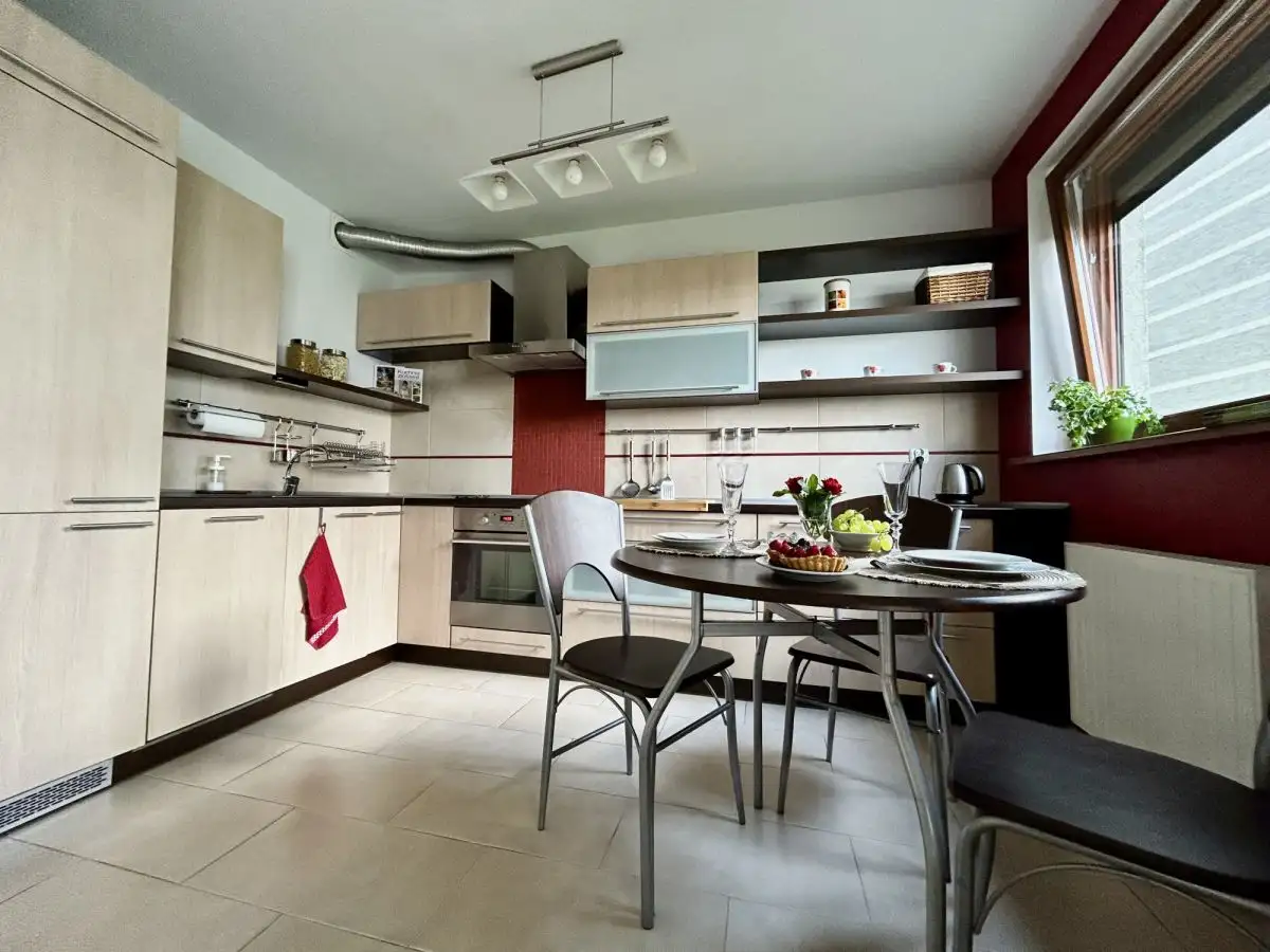 Kuchnia, duża i funkcjonalna, wykonana na wymiar z pełnym wyposażeniem (piekarnik, płyta elektryczna, okap, zmywarka, lodówka)