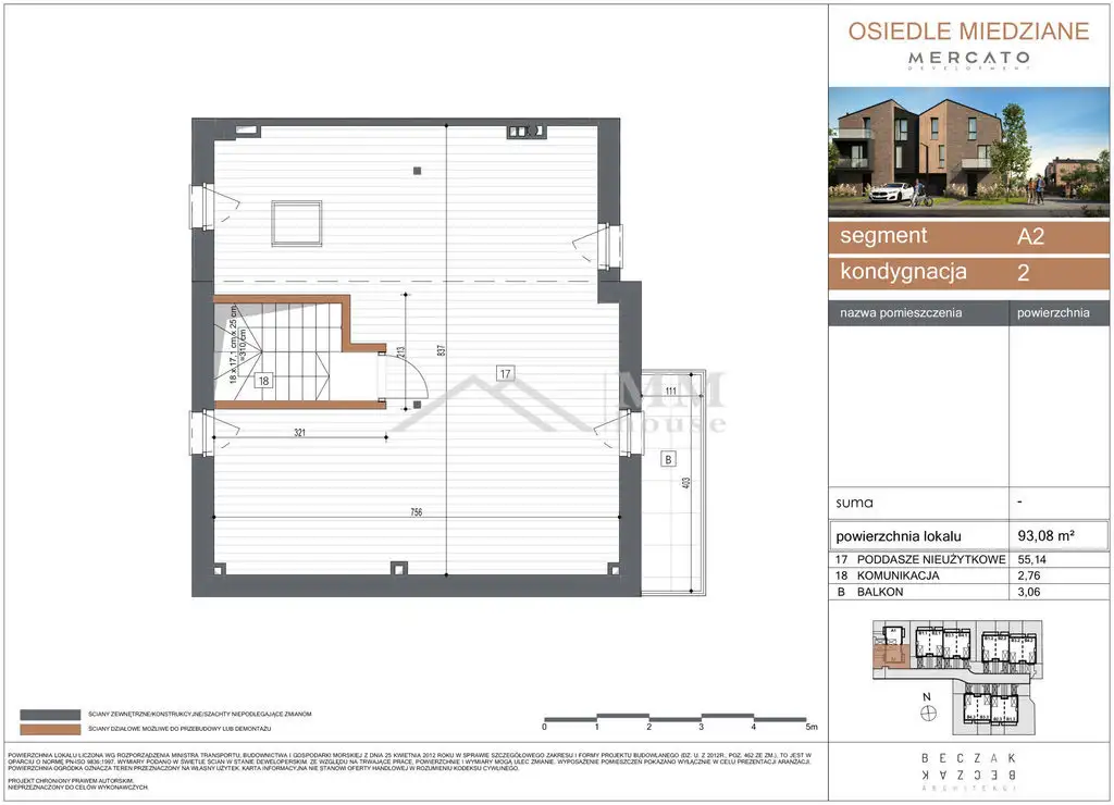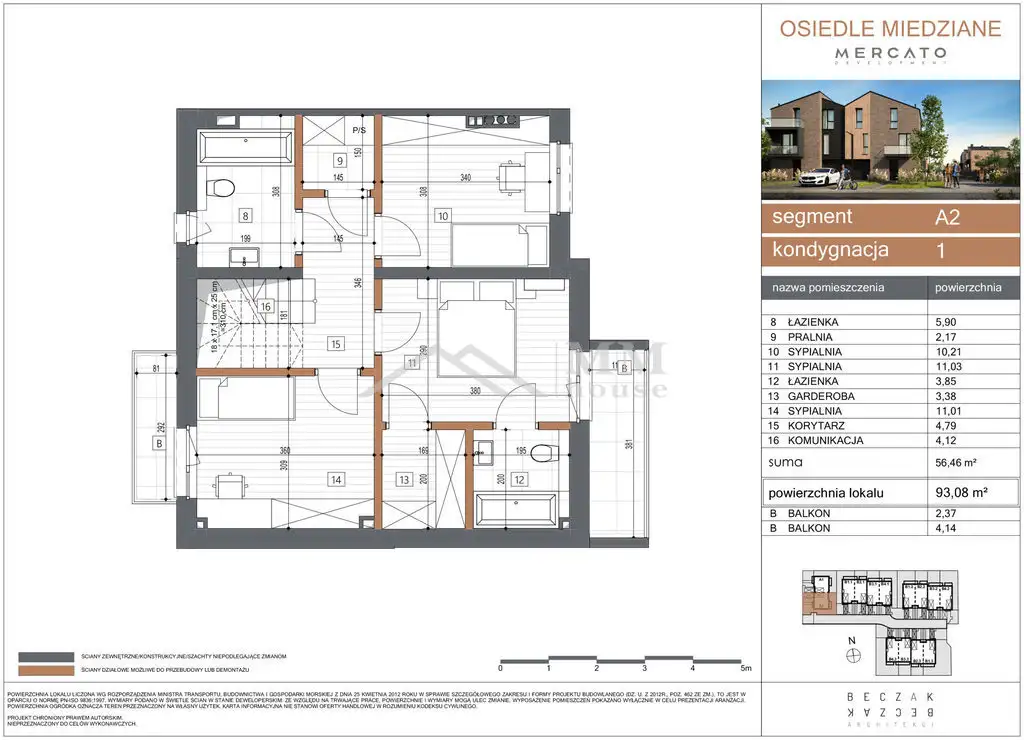 Trzykondygnacyjny budynek ma całkowitą powierzchnię 171,16 m² i składa się z: