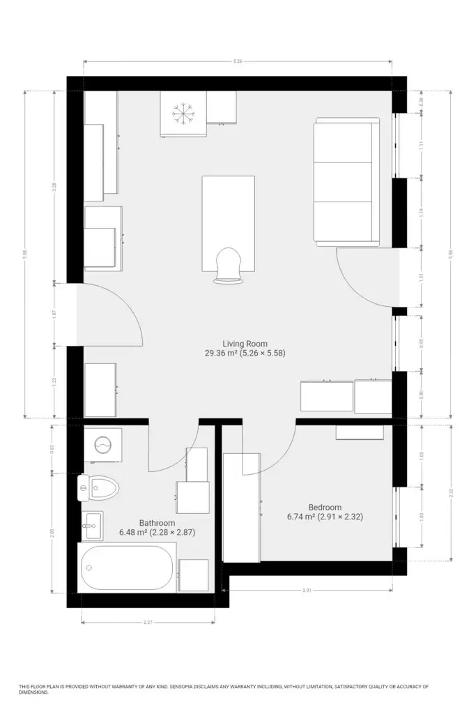 Lokal znajduje się na 2. piętrze, a jego powierzchnia wynosi 42,13 m², co czyni go wyjątkowo kompaktowym, a jednocześnie funkcjonalnym.