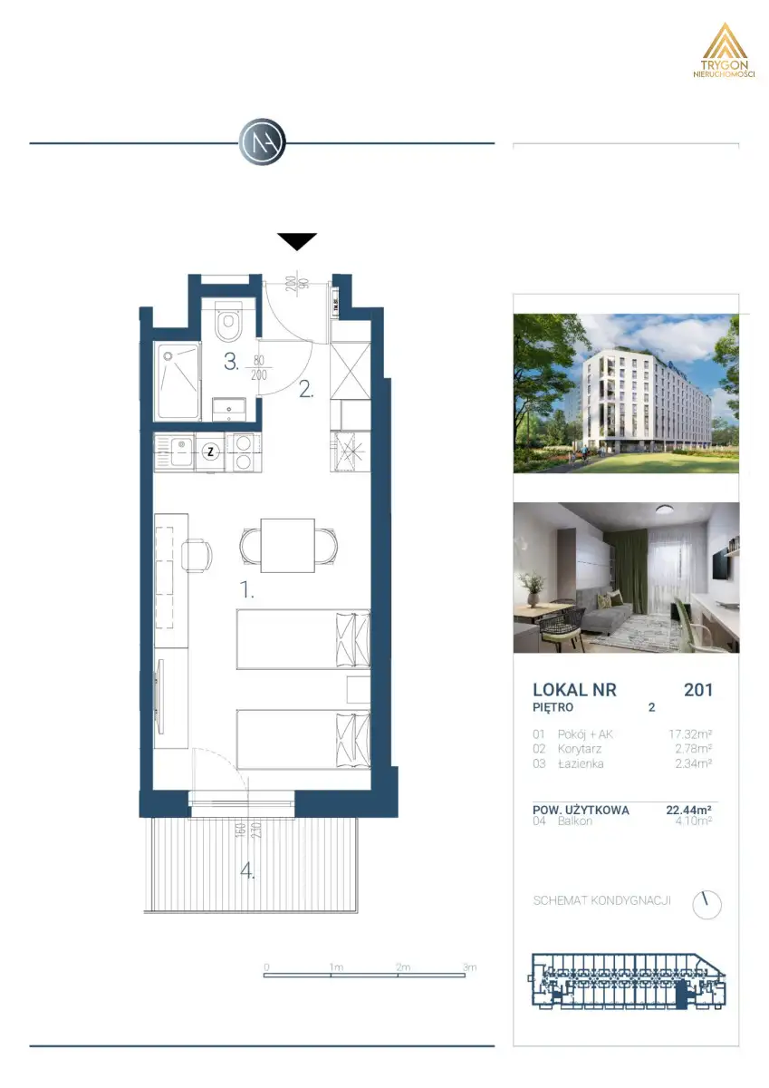 Oferta mieszkania o wielkości blisko 21 m² w pełni umeblowane: