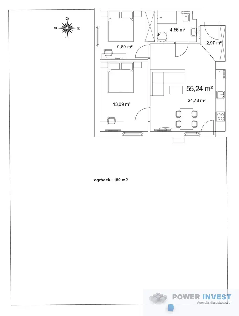 Mieszkanie znajduje się na parterze. Lokal ma powierzchnię 55,24 m² powierzchni użytkowej i składa się z: