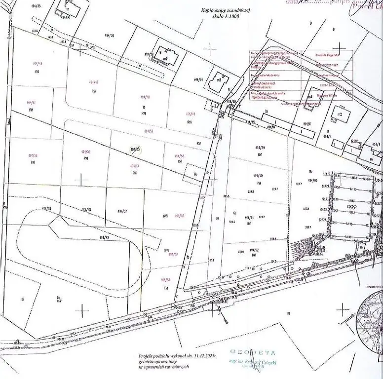 Działka 494/54 (użytek RVI o pow. 0,1692 ha) stanowi nieruchomość gruntową niezabudowaną, niezagospodarowaną, nieogrodzoną, nieuzbrojoną (sieć wodna, kanalizacyjna i energii elektrycznej przebiega w działce drogi publicznej nr 705 oraz w drodze wewnętrznej stanowiącej działkę nr 494/10). Teren o płaskim ukształtowaniu i regularnym kształcie zbliżonym do prostokąta, porośnięty intensywnie roślinnością trawiastą, częściowo dzikim zadrzewieniem bez wartości użytkowej. Dojazd do drogi publicznej zapewniony będzie przez działkę oznaczoną nr 494/51 stanowiącą drogę wewnętrzną.