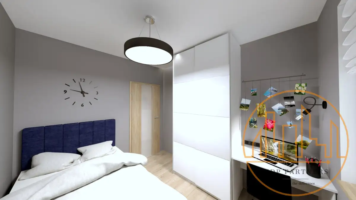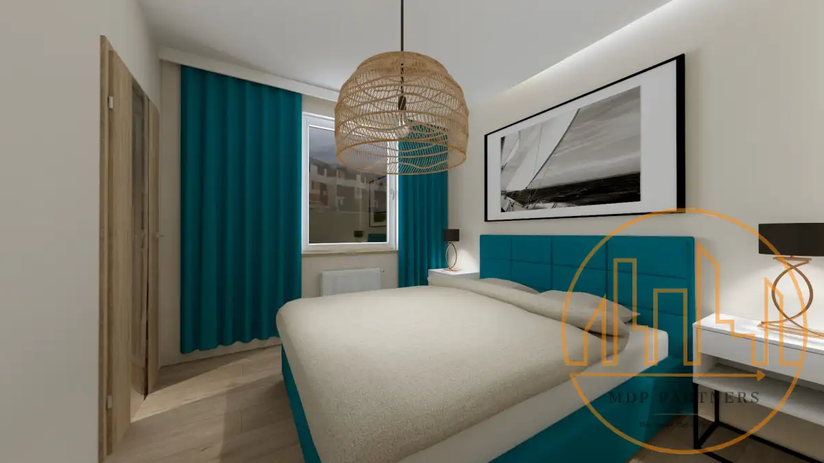 2-3 sypialnie + salon z aneksem.Prywatny, ogrodzony ogródek 40 m² z wyjściem z salonu - idealny na relaks lub przestrzeń do zabawy dla dzieci.