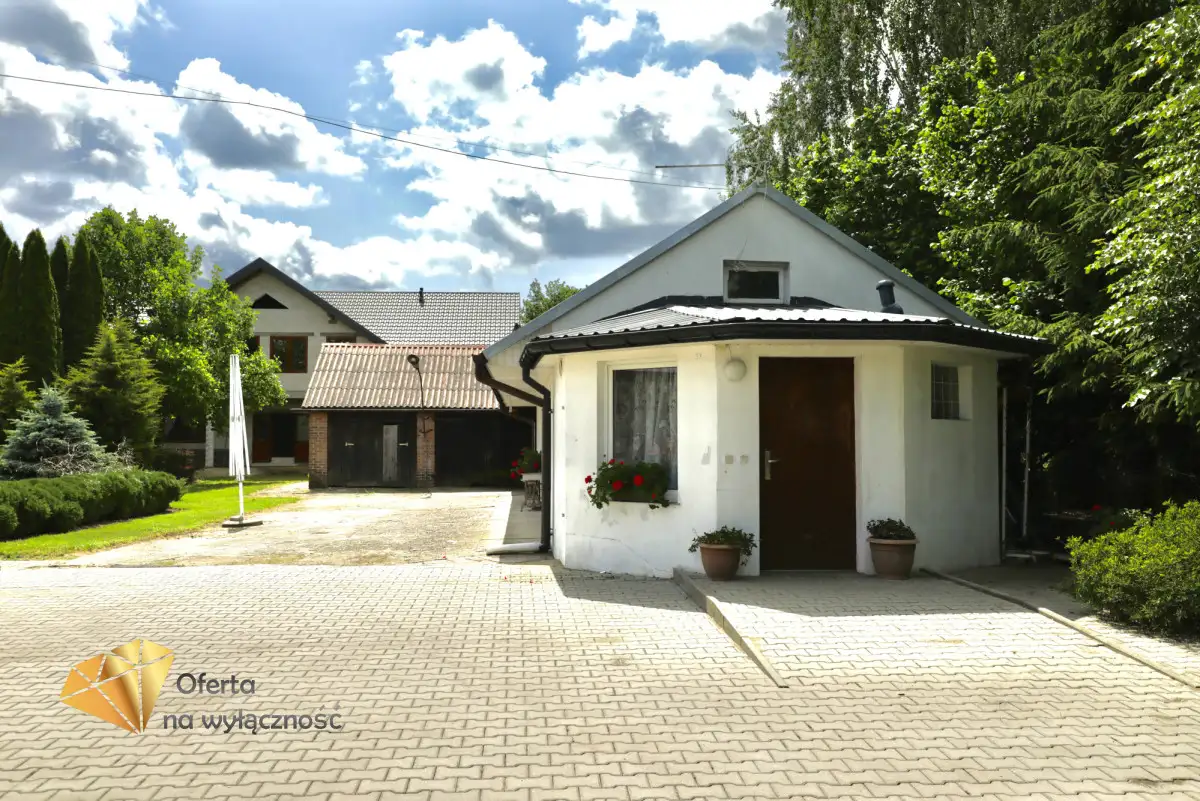 Na dużej, ogrodzonej działce o powierzchni 0,97 ha znajdują się 3 budynki mieszkalno-użytkowe