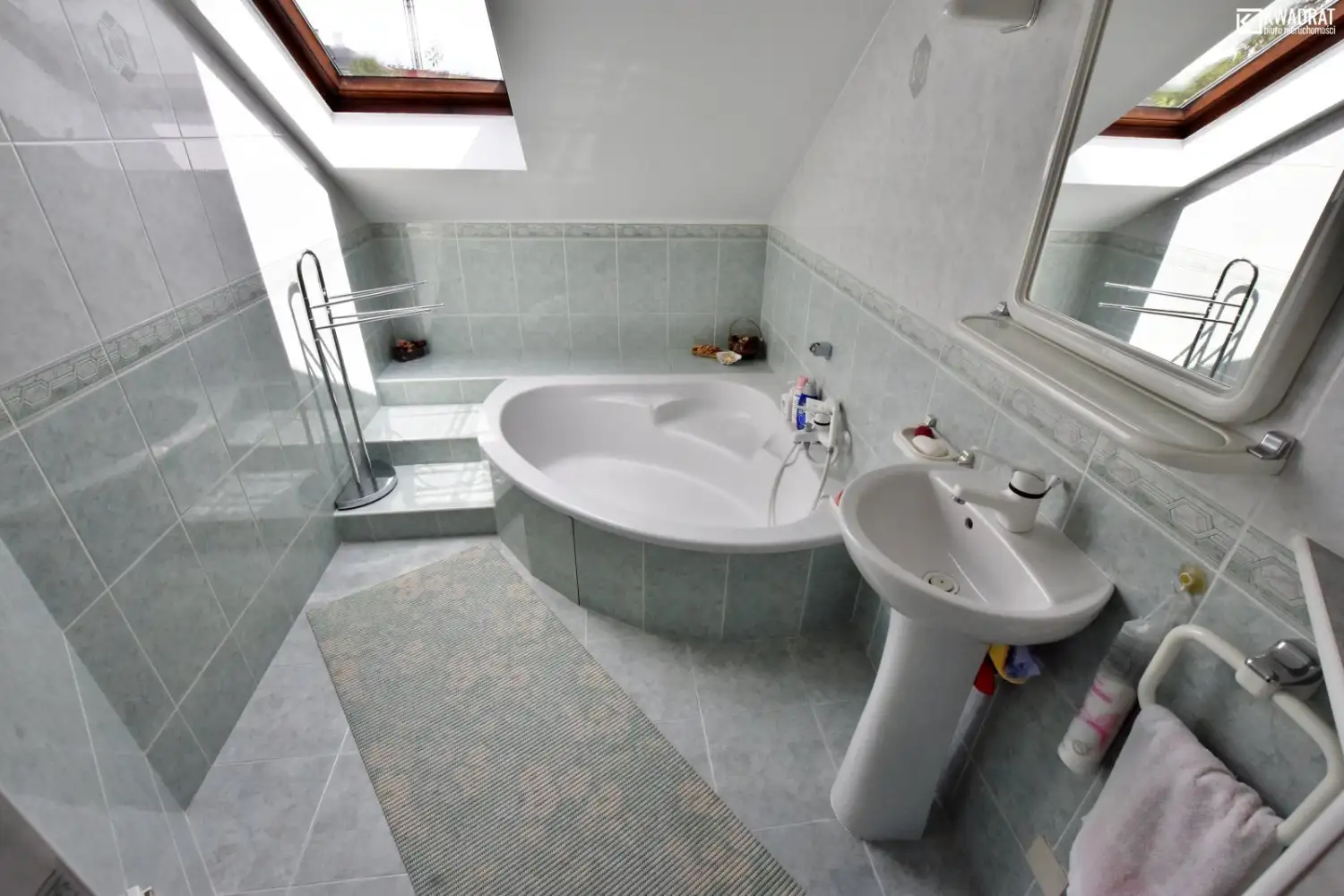 Na najniższej kondygnacji znajduje się w pełni zagospodarowana i funkcjonalna piwnica( 83,10m²), stanowiąca dodatkową przestrzeń wypoczynkową i użytkową. Największym atutem tej części domu jest stylowy pokój rekreacyjny z barkiem, urządzony w klimacie vintage. Znajdują się tu wygodne miejsca do siedzenia, solidne drewniane meble oraz przestrzeń idealna do spędzania czasu z rodziną lub gośćmi. To doskonałe miejsce na domowe kino, wieczór z grami planszowymi czy relaks przy kominku. Dodatkowo na tym poziomie mieszczą się: - pralnia z miejscem na pralkę i suszarkę, - kotłownia z nowoczesnym piecem, - pomieszczenia gospodarcze/schowki, oferujące dużo miejsca na przechowywanie rzeczy sezonowych. Dzięki oknom (w tym pomieszczeniu rekreacyjnym) przestrzeń ta jest dobrze doświetlona i może być z powodzeniem użytkowana na co dzień.
