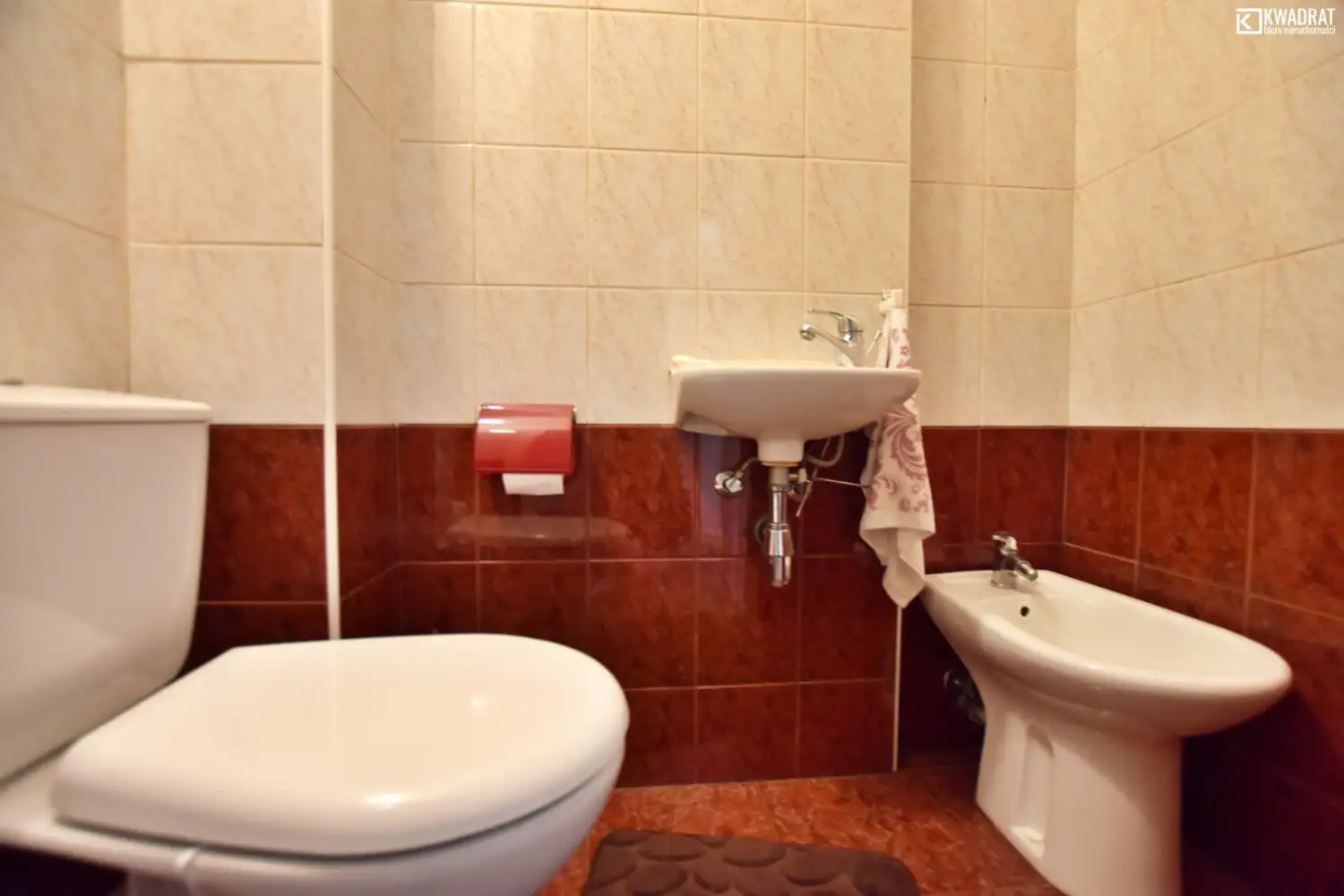 Piętro domu ( 62m² )stanowi wyraźnie oddzieloną strefę prywatną, idealną do wypoczynku i codziennego życia domowników. Znajdują się tu trzy przestronne sypialnie, które można zaaranżować według indywidualnych potrzeb - jako pokoje dziecięce, główna sypialnia, gabinet lub pokój gościnny. Jedna z sypialni posiada wyjście na balkon, co dodatkowo podnosi komfort użytkowania i zapewnia dostęp do świeżego powietrza oraz światła dziennego. Na piętrze mieści się również: - funkcjonalna łazienka, - oddzielna toaleta, co zwiększa wygodę dla wszystkich domowników, zwłaszcza w godzinach porannych. Naturalne światło, wygodny układ pomieszczeń i klasyczny wystrój czynią to piętro przytulnym i dobrze przemyślanym miejscem do codziennego życia.
