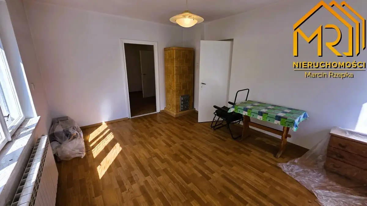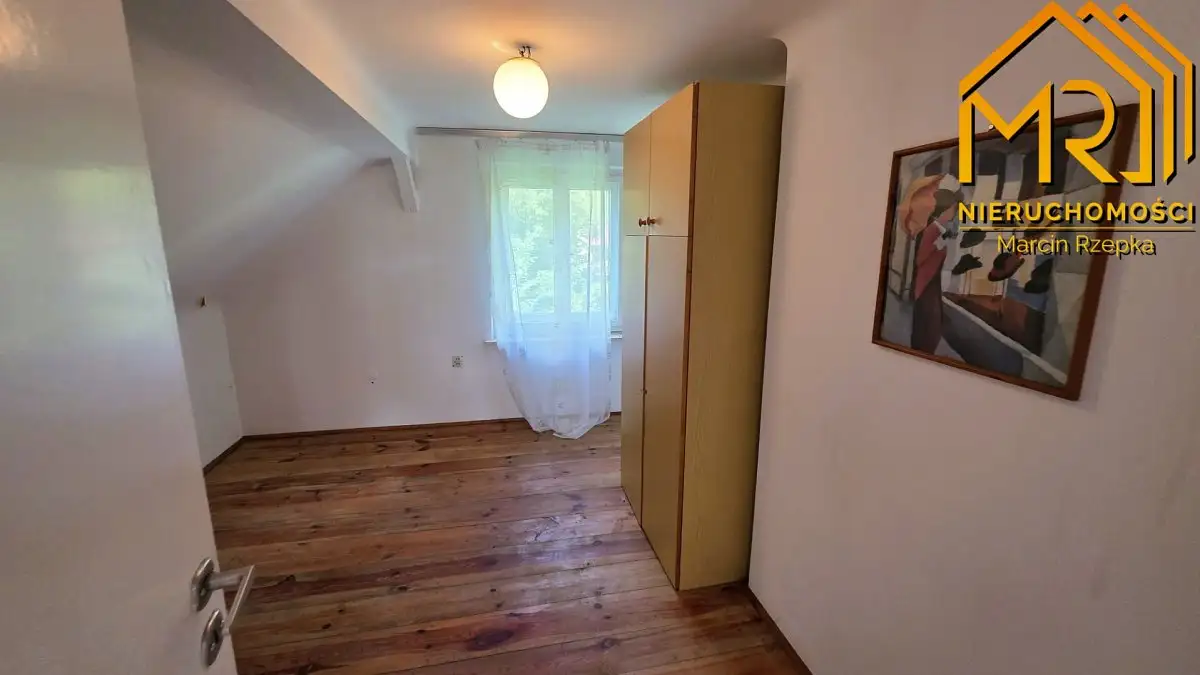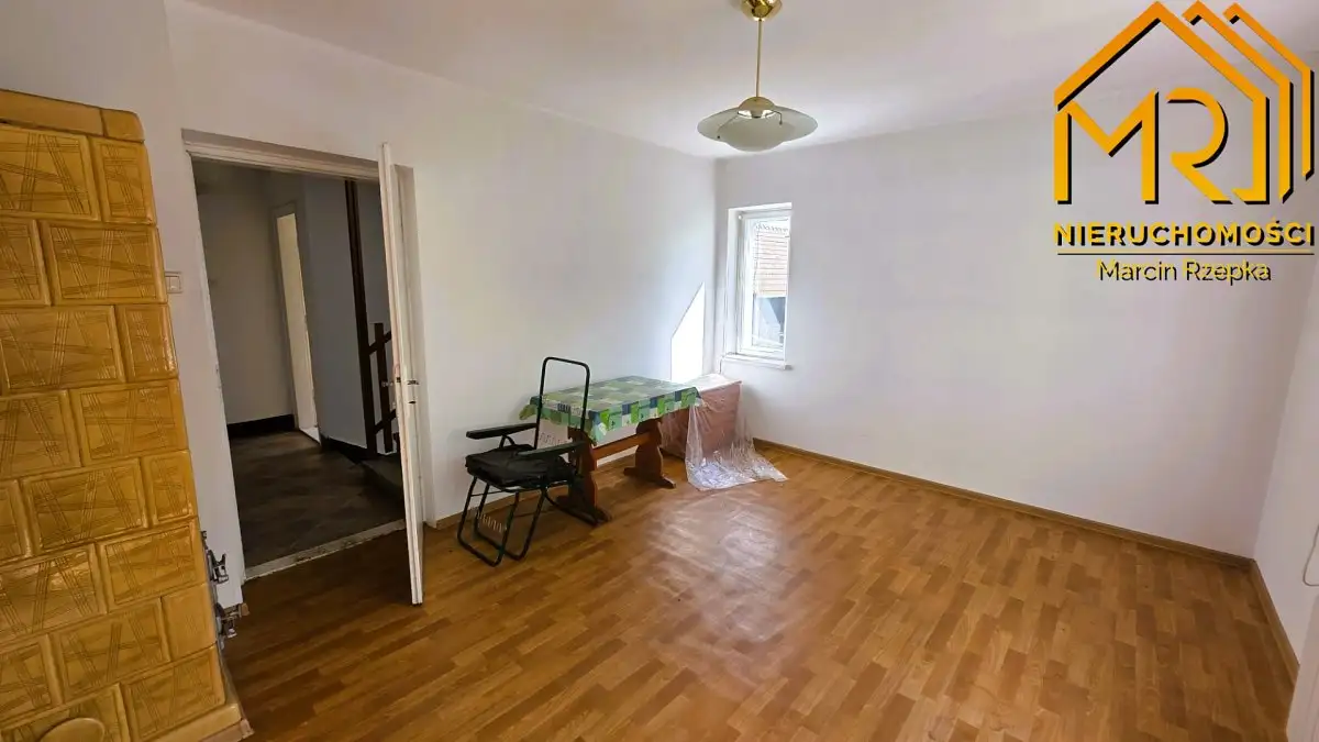 Dom parterowy z poddaszem użytkowym, w pełni podpiwniczony. Na parterze znajduje się przestronny układ pomieszczeń: dwa pokoje, kuchnia, łazienka oraz osobne WC. Piętro obejmuje trzy pokoje, łazienkę oraz praktyczny schowek. W piwnicy wydzielono cztery pomieszczenia gospodarcze. W pokojach na podłogach położone są deski, natomiast w kuchni i łazienkach płytki. Ogrzewanie centralne piec na węgiel/drewno oraz w kuchni dodatkowo piec kaflowy.