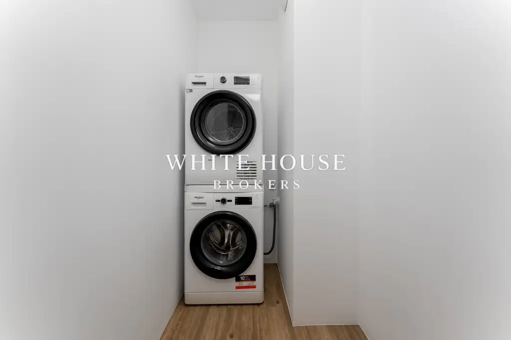 – Osobne pomieszczenie gospodarcze zaprojektowane jako pralnia i suszarnia, wyposażone w pralkę oraz suszarkę (pozostają na wyposażeniu).