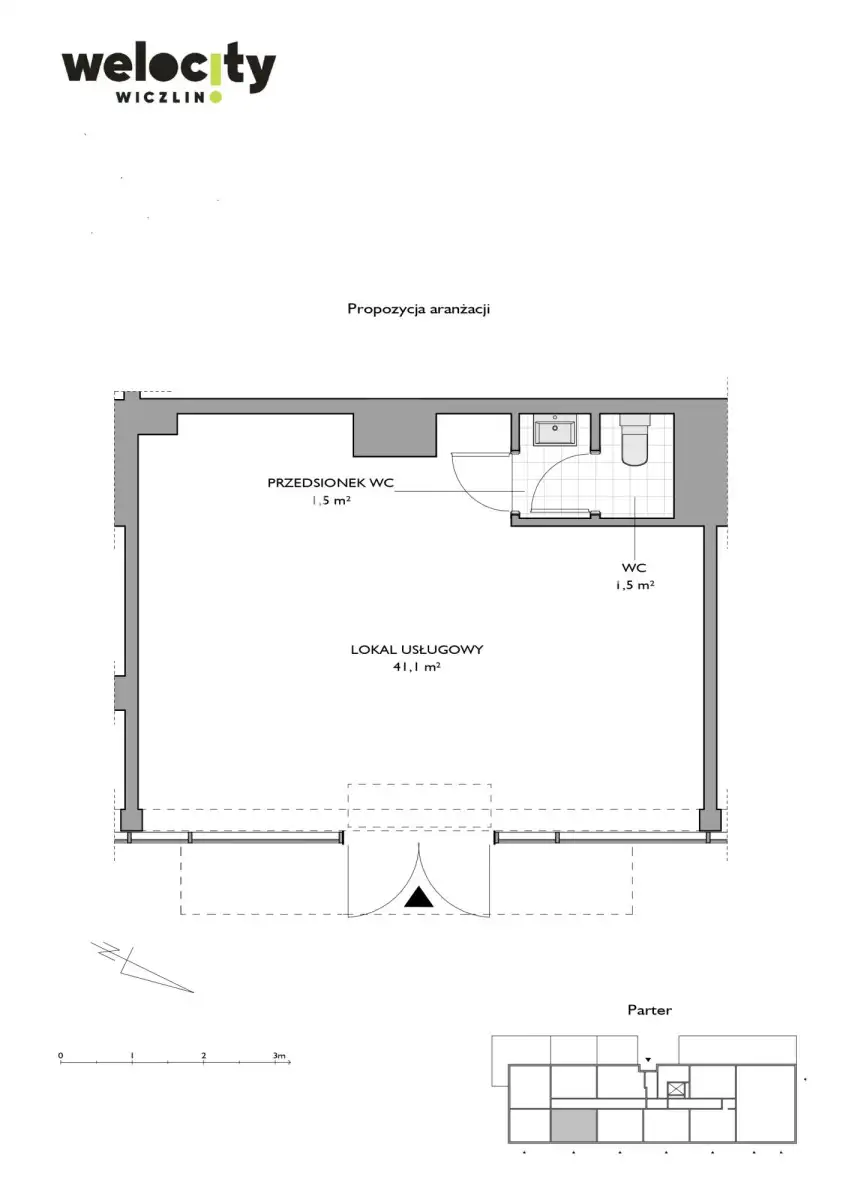 Welocity.Aktualnie w skład lokalu wchodzi pomieszczenie główne i dwie toalety.