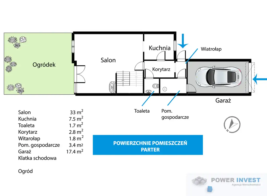 Powierzchnia domu to około 170m², w tym 121.5m² powierzchni użytkowej na parterze oraz piętrze, oraz około 50m² poddasza (całkowita powierzchnia pod skosami).