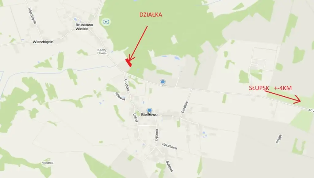 agroturystyki, budynku gospodarczego, inwentarskiego, wiaty grillowej.'' 4 km od Słupska . Powierzchnia 0,86 Ha. 200 m dalej znajduje się Starosielski-Fabryka Przekładni Kątowych Słupsk. Stacyjka oraz ścieżka rowerowa w odległości 150 m . Główne wymiary działki , która jest w kształcie trapezu to: dłuższe boki AC tj .177m oraz 167 m oraz krótszych boków BD 54m oraz 42,5m. Media w w drodze w odległości 145 m od działki. Tuż obok znajduje się również druga działka o powierzchni 0.78 Ha. Jest to pięciokątna działka: dłuższe boki AC to 217 m oraz 205 m , krótsze boki B,D1 ,D2 wymiary : B-39,5 m , D1 12 m, D2 25,5m.