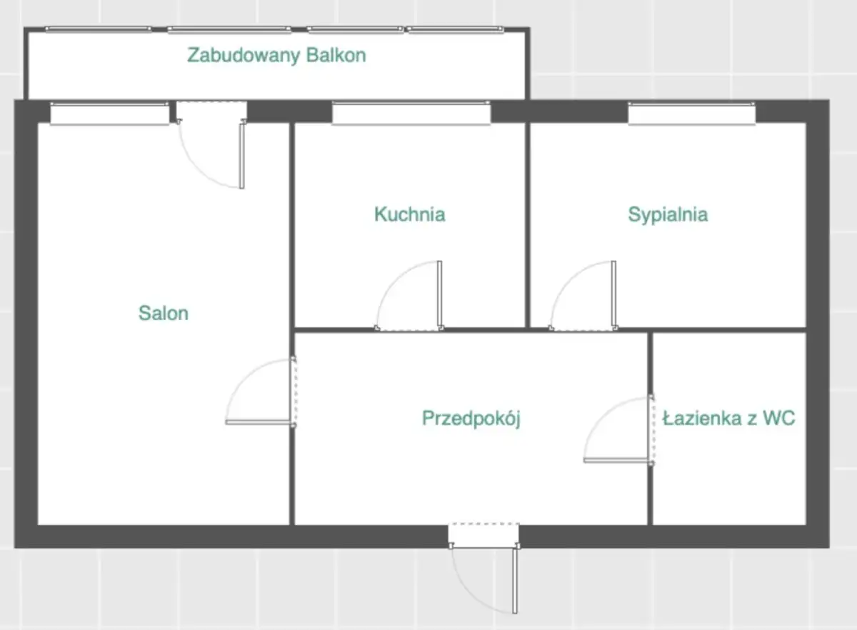Mieszkanie składa się z przestronnego, jasnego salonu z wyjściem na zabudowany balkon, oddzielnej, widnej kuchni, przytulnej sypialni, łazienki z WC oraz przedpokoju. Lokal jest jednostronny, ale dzięki dużym oknom wnętrza są doskonale doświetlone. Dodatkowym atutem jest zamykany na klucz korytarz, który podnosi komfort i bezpieczeństwo mieszkańców.