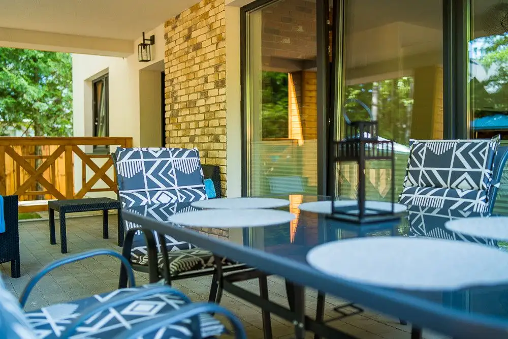 Na sprzedaż apartament o powierzchni 44 m² z 20-metrowym tarasem i komórką lokatorską usytuowany na parterze w kameralnym budynku apartamentowym "4 Pory Roku", zlokalizowany w Dębkach, w powiecie puckim, w gminie Krokowa, położony na działce o powierzchni 1115 m², (nr ewidencyjny 2170), przy ulicy Topolowej, położony jest zaledwie w linii prostej 500 m do morza, a 70 m do głównej ulicy Dębek, Spacerowej.
