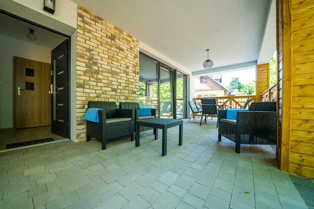 Budynek wolnostojący o wysokim standardzie wykończenia, dwukondygnacyjny, murowany, wybudowany w 2017 roku z gazobetonu, ocieplony i otynkowany (elewacja tynk silikonowy). Dach pokryty został blachą na rąbek, zastosowano okna PCV trzyszybowe w dwustronnym szarym kolorze.