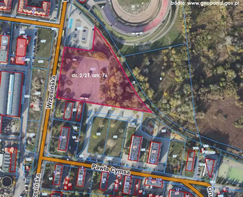 przy ul. Wrzesińskiej, stanowiąca własność Miasta Gniezna, oznaczona w ewidencji gruntów jako działka nr 2/21 na arkuszu 76 o powierzchni 1.2176 ha, dla której Sąd Rejonowy