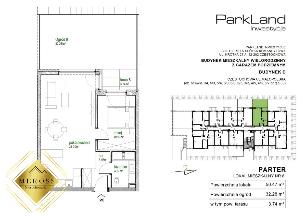 MEROSS Nieruchomości & ParkLand Inwestycjeprzedstawia do sprzedaży mieszkaniezlokalizowane w dzielnicy Parkitka w Częstochowiena osiedlu Park MałopolskaMieszkanie może być wyposażonew Inteligentny...