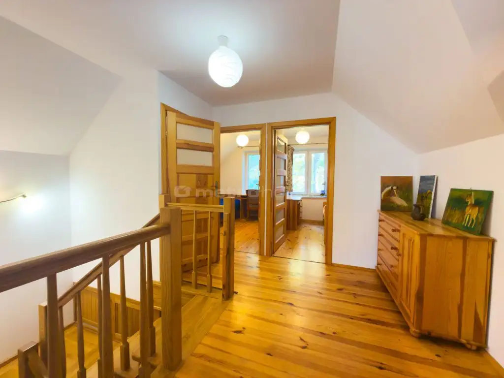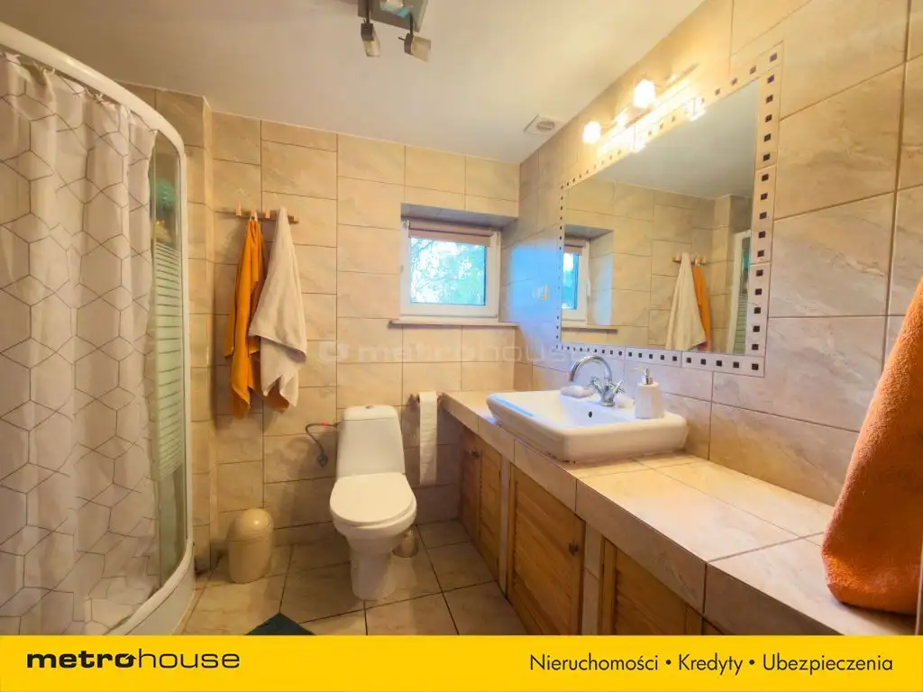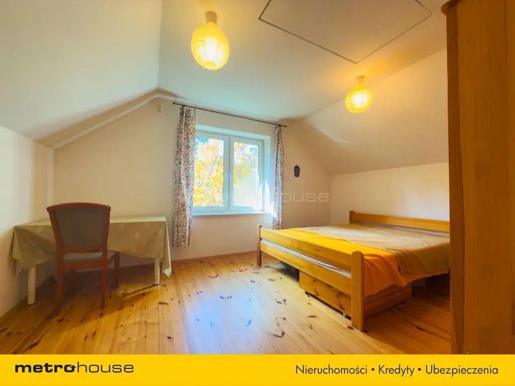 Na parterze znajduje się przytulny salon z kominkiem i wyjściem na zadaszony taras z widokiem na staw, kuchnia oraz łazienka z prysznicem. Na piętrze są cztery sypialnie i dodatkowe WC.