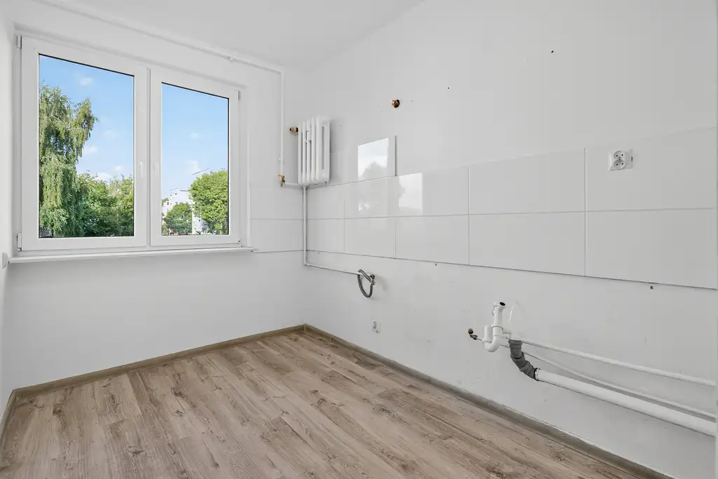 W pobliżu: sklepy (Netto, Biedronka, Żabka), szkoła podstawowa, punkty gastronomiczne, kościół, paczkomaty, przystanek autobusowy. Zdjęcie kuchni z wyposażeniem jest poglądowe, a zabudowy kuchennej nie ma na wyposażeniu